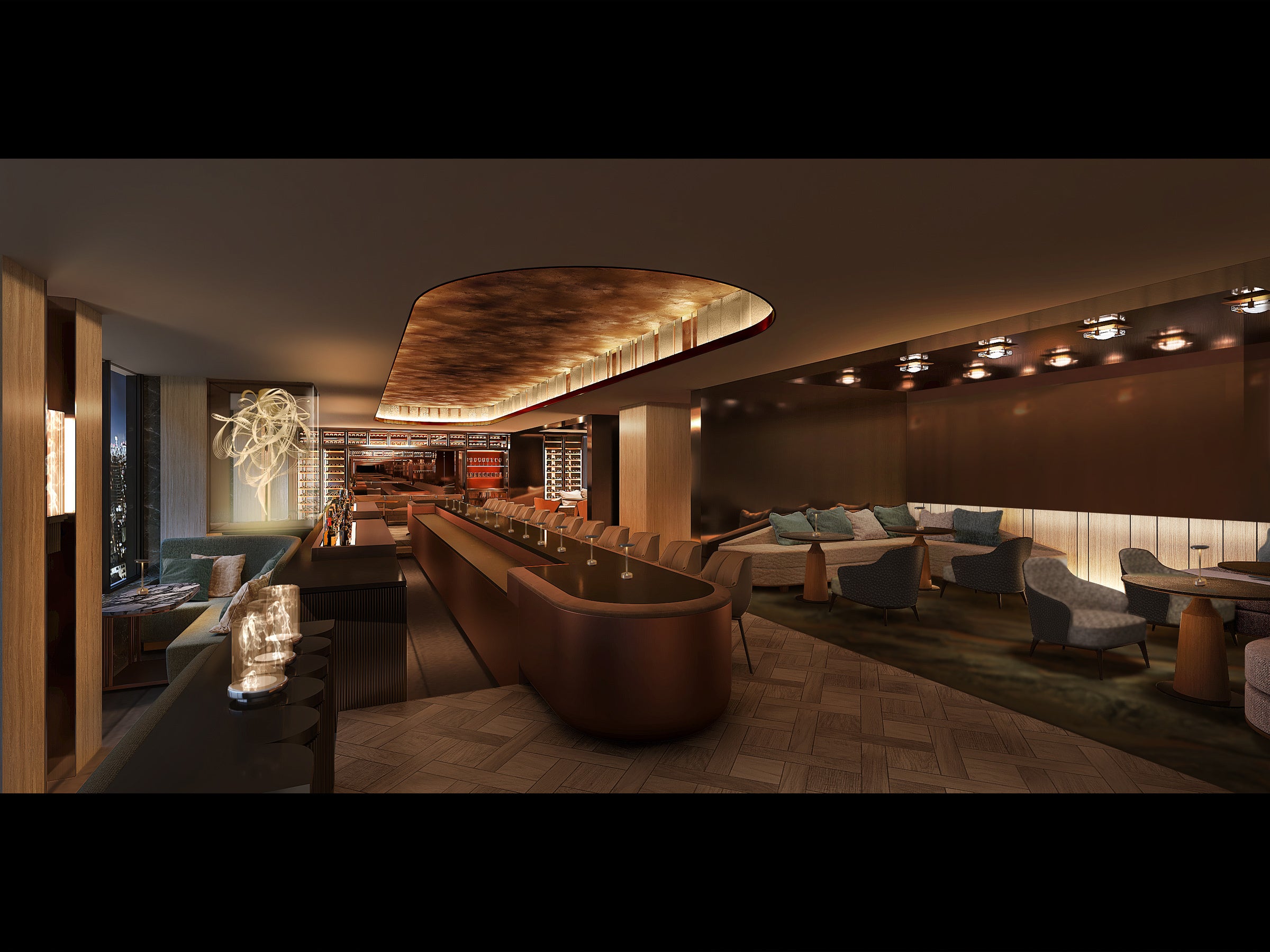 恵比寿の上空に潜むスカイバー。扉の奥には、幻想的な光で演出された空間の中、東京の煌めく景色が目の前に広がります。世界最高のバーアワード「THE WORLD’S 50 BEST BARS」をはじめとする数々の栄冠に輝く「The SG Club」が、エスカリエのために創作したカクテルやモクテル、総料理長によるここでしか味わえない大人のデザートなど、この最上階にたどり着いたゲストのみが得られる驚きと感動に満ちた特別な体験をご提供します。かつてのこの地にあったビール工場のシンボリックな煙突から沸き立つ煙をモチーフにした空間で、心躍る驚きをご堪能いただけます。