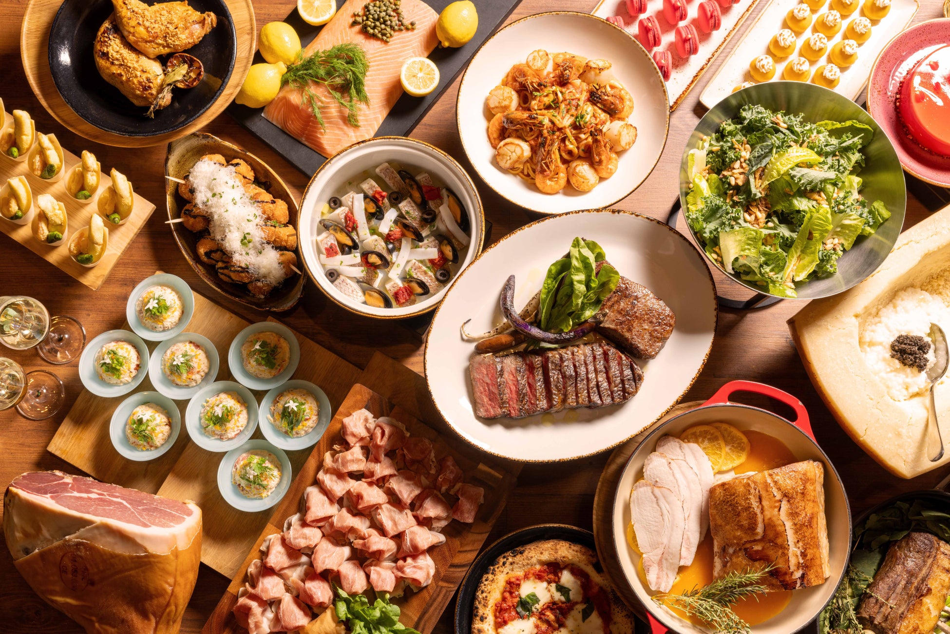 JAM17 DININGのグランドメニューから石窯で仕上げる看板メニューをはじめ、特にご好評をいただいている品々をラインアップし、お好きなものをお好きなだけ楽しめるニューイヤーブッフェ。世界各国から多様な人々が集う街らしく、前菜からデザートまでさまざまな国の料理を取り揃え、新たな美味しさとの出会いをご用意いたします。オープンキッチンのライブ感あふれる店内でご家族や大切な方と新年のお祝いのひとときを賑やかにお楽しみください。