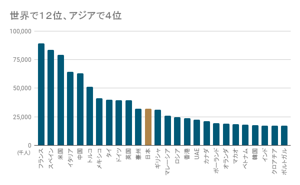 外国人旅行者受け入れ数で、日本は12位(※1)。日本以上に熱い市場が11カ国も。