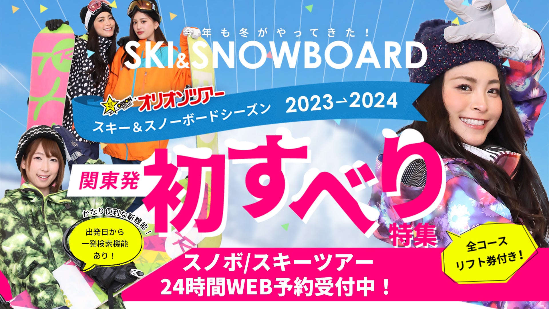 関東、東海、関西、中国、九州各エリア発のスキー&スノーボードツアーを催行しているオリオンツアーでは、2023-2024のウインターシーズンも多彩なツアーを催行。スキー&スノーボードツアー特設ホームページにて、WEB予約を受け付けています。