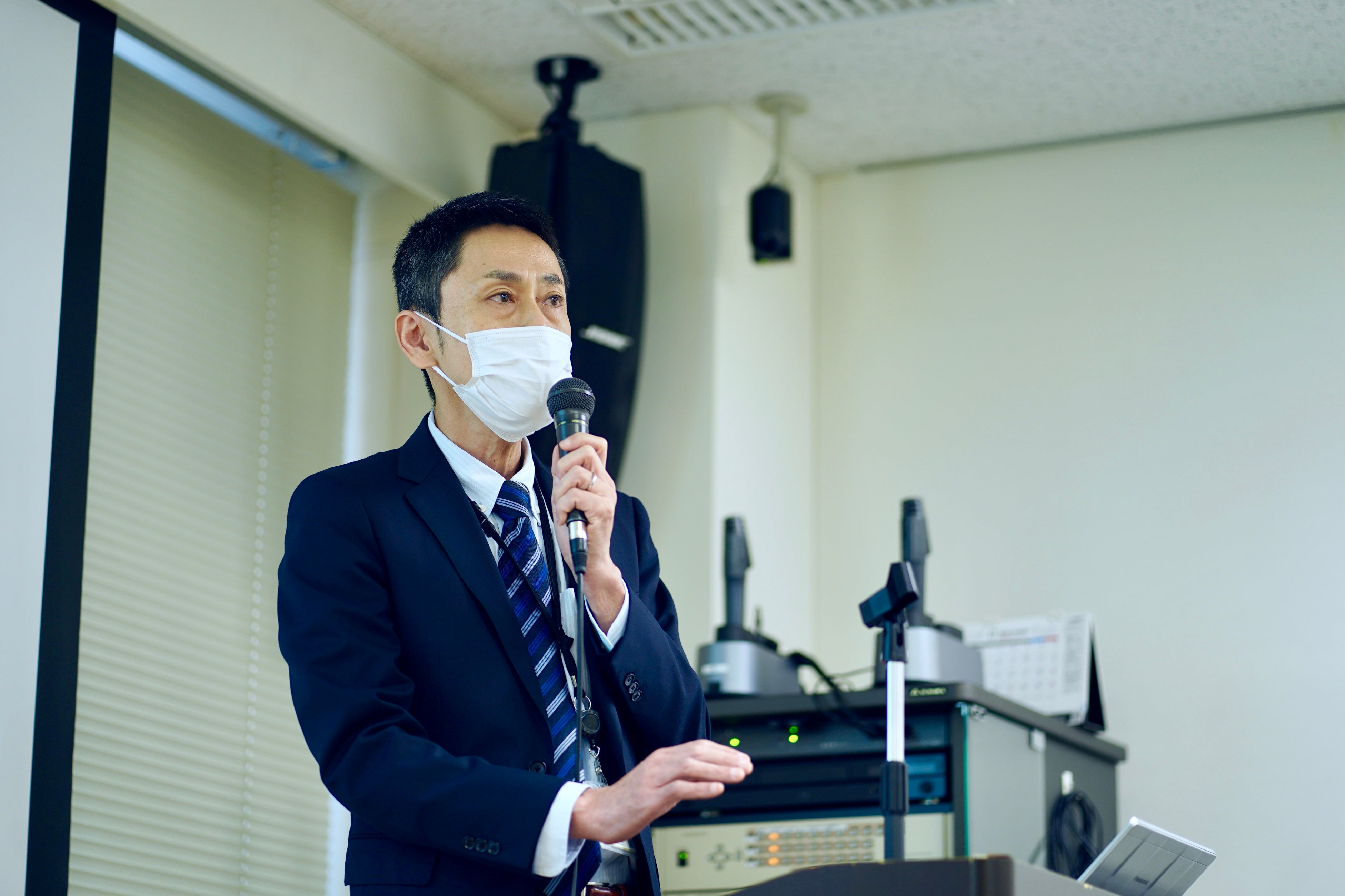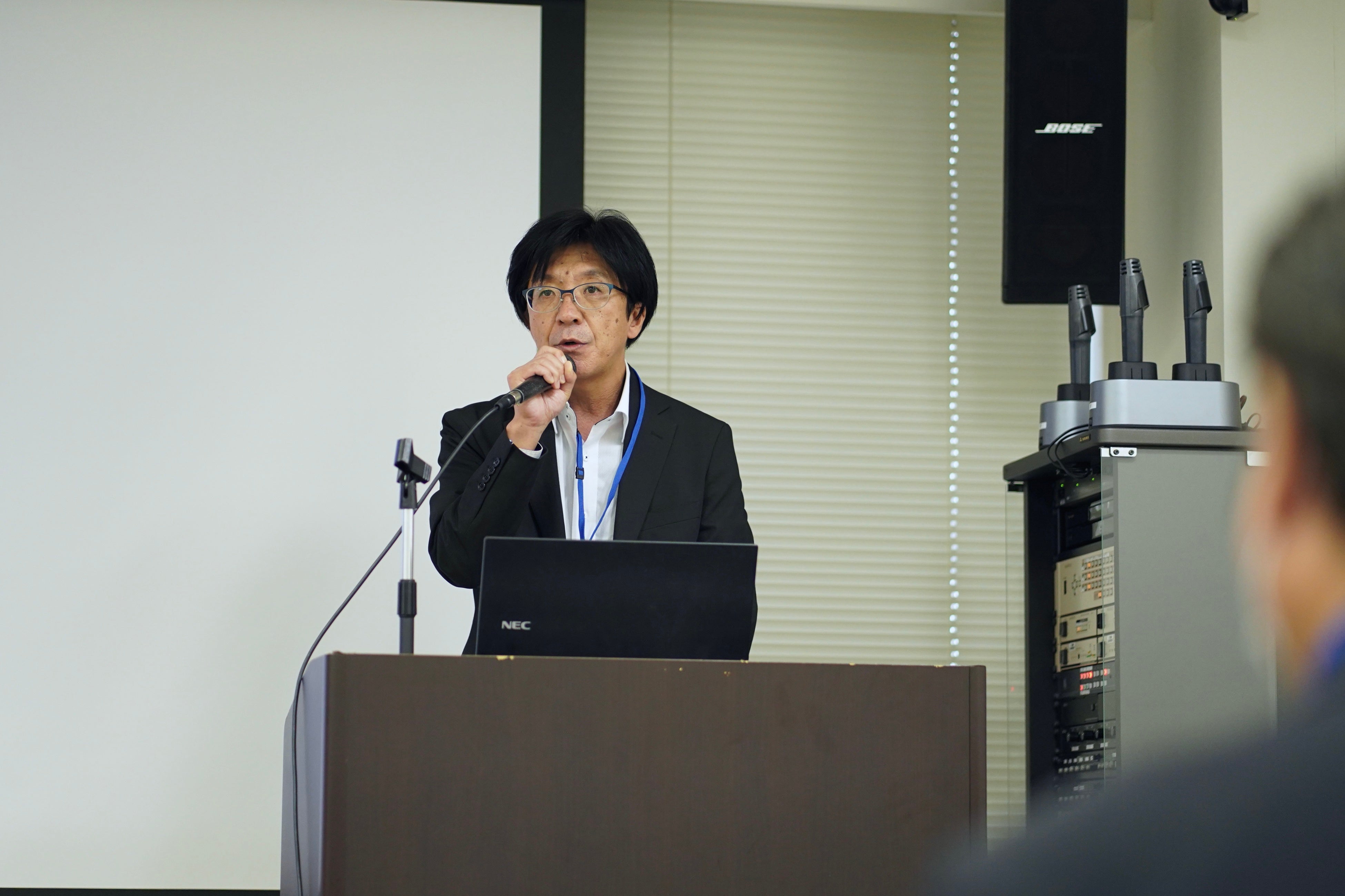 本協議会では、専門家を招いた特別講習も実施しています。今回は独立行政法人自動車事故対策機構「NASVA」の運送安全マネジメント事業部より、島添勝博様が登壇。