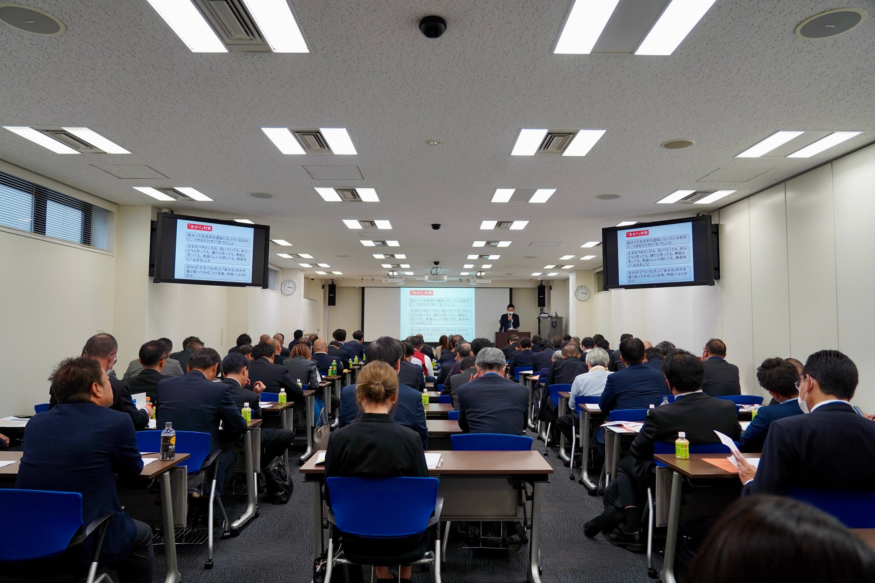 運転のメカニズムから、「焦り・怒り・おごり・疲れ・不注意・思い込み」といった事故を誘発する精神状態とその解消法、日頃の健康管理の重要性などを、クイズやアクティビティを交えながら解説し、参加者は熱心に耳を傾けました。