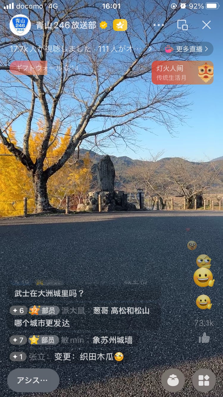 2日間7時間に及ぶライブ配信で、累計約3.8万視聴を記録。ライブ中は、日本ファンの中国人から届くコメントに反応して、より詳しい情報を説明するなどファンとのコミュニケーションをはかり、ライブだからこそ楽しめる観光体験を提供しました。青山246放送部はこれからも、クオリティーの高い企画・映像とライブ配信ならではの相互コミュニケーションを活かし、全国の観光情報を中国に発信します。