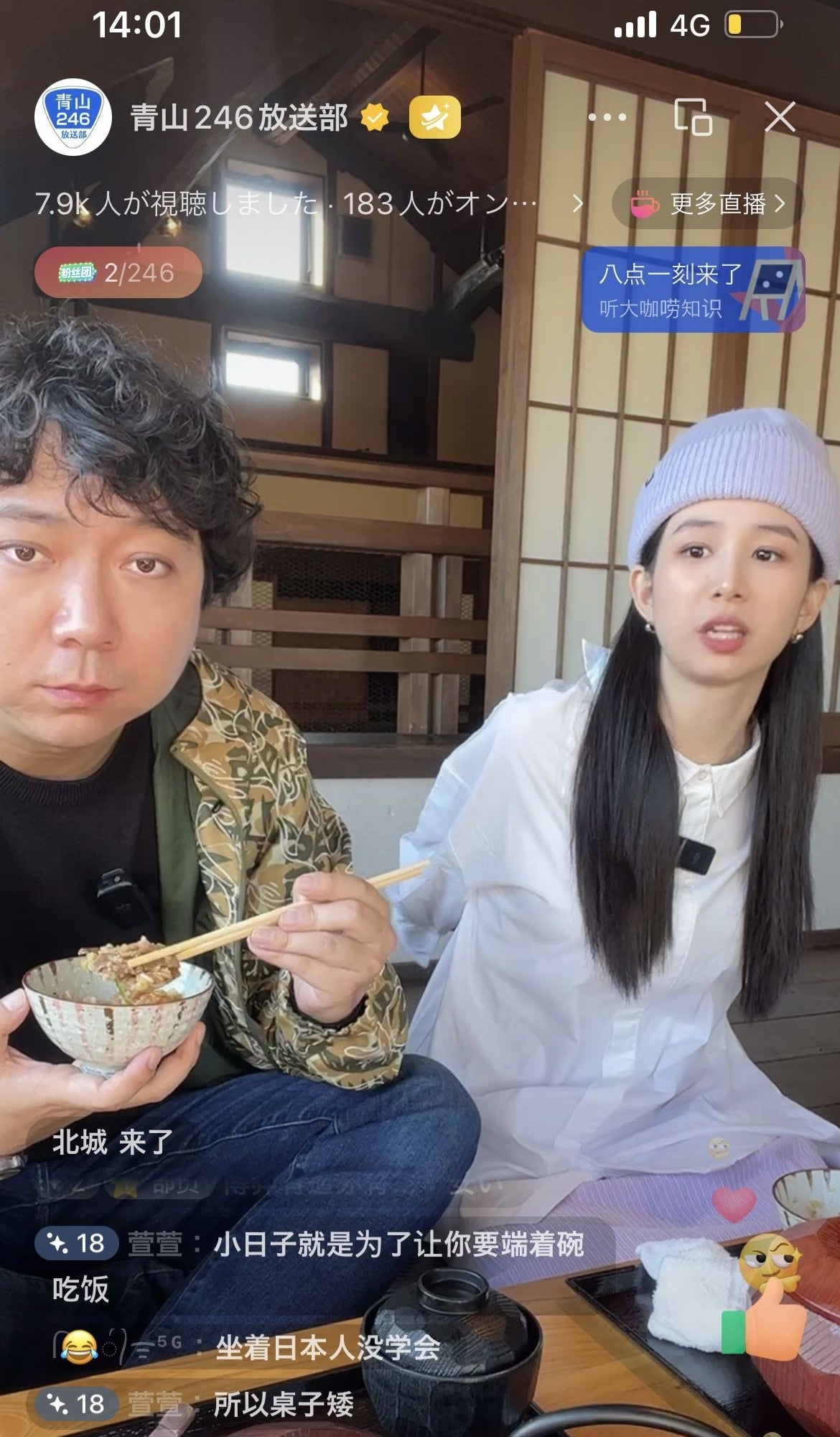 「青山246放送部」は「日本が好き」、「日本を知りたい」、「日本に行ってみたい」という中国の方に向けた、WeChatのライブ配信を柱としたエンターテイメント番組です。日本全国の観光地などから、ほぼ毎日一日4時間のライブ配信を実施。ライブ配信の数は2022年5月のスタートから425回を超え、延べ1490時間、1229万視聴、2291万の”いいね”を記録し、中国のファンに日本の魅力を発信しています。