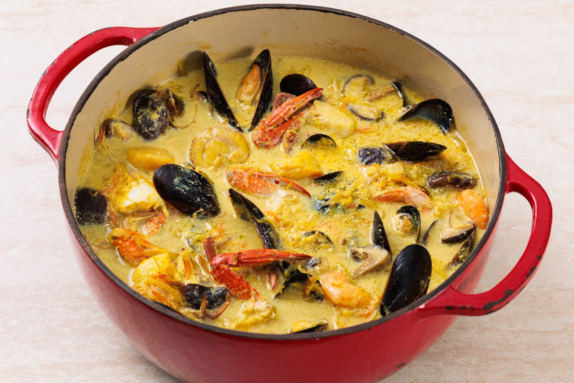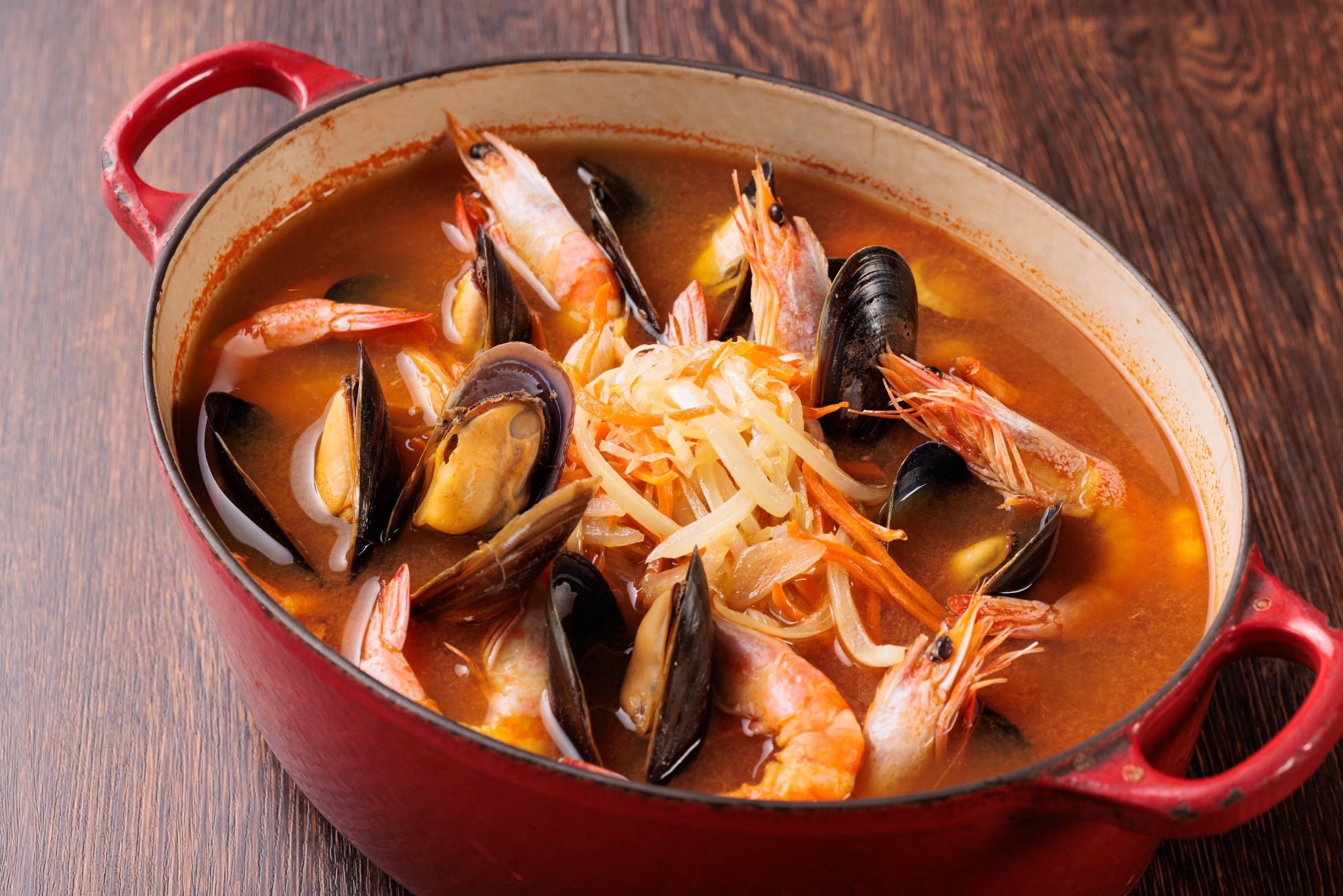 魚介類をトマトで煮込んだ濃厚なスープとパンを合わせて食べるのがオススメな料理。ワインに合う一品となっています。