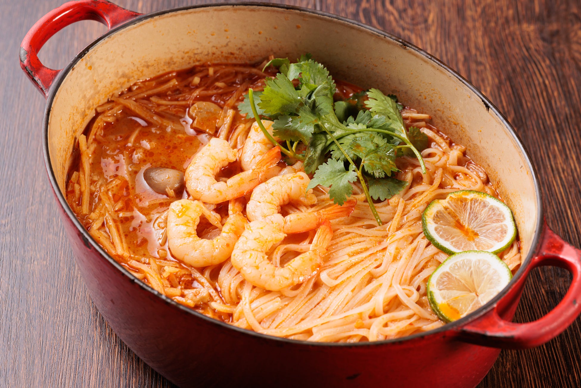 料理名の由来となっているエビの旨味をベースに、酸味と辛味を効かせたスープ。スパイスなどでアクセントを加えたタイ料理をヌードルやご飯と合わせてお楽しみください。
