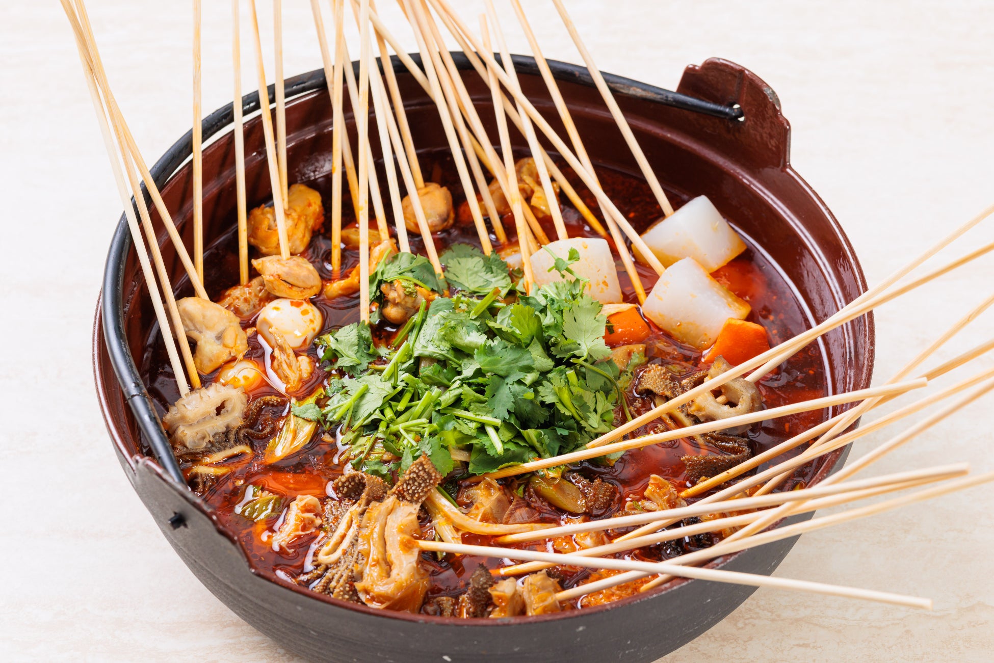 中華シェフが香りと辛味にこだわった、パンチの効いたスープ。ハチノス・センマイなどを串に刺し、具材にもインパクトのある変わり中華鍋をご提供します。