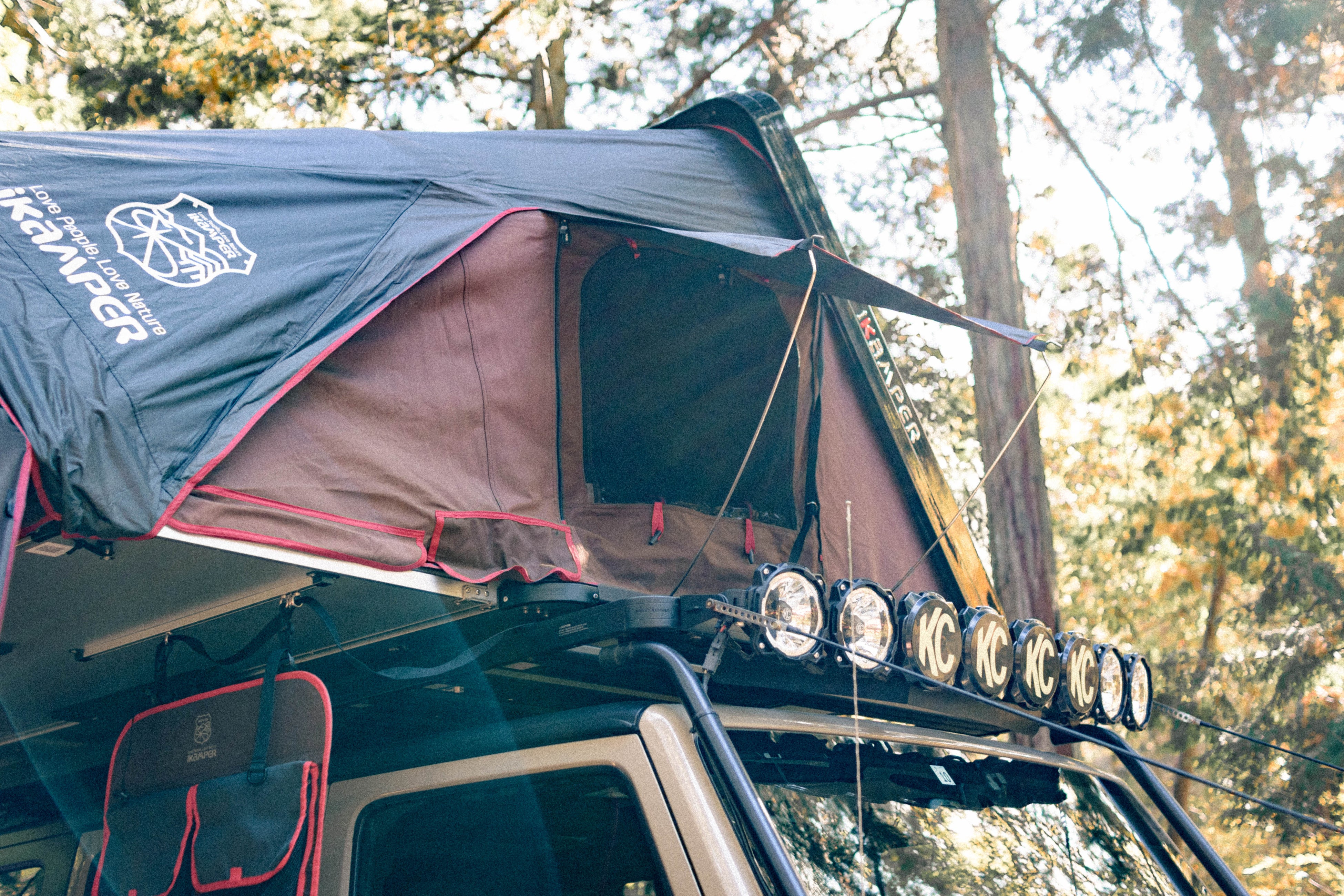 iKaMPER SKYCAMP2.0と専用サイドオーニングを装備。