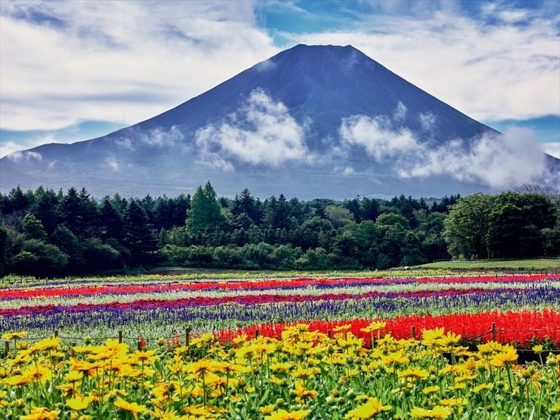 例年4月中旬~5月にかけて残雪の美しい世界遺産・富士山と、自然あふれる広大な場内の敷地いっぱいに咲き誇る芝桜との共演が楽しめる春の風物詩「富士芝桜まつり」、夏から秋にかけては「虹の花まつり」を開催する、季節の花々が織りなす美しい絶景に出会える庭園です。また、英国生まれの人気キャラクター「ピーターラビット™」の世界観が楽しめる「ピーターラビット™ イングリッシュガーデン」は、首都圏最大級の英国式庭園では、約300種類の草木や花々をご覧いただくことができます。さらに、味はもちろん見た目も鮮やかなメニューが楽しめるカフェ、絵本の世界を体感できるギャラリー、約8mの高さから庭園越しに富士山を見渡すことができるガーデンタワーなど、子どもから大人の方までピーターラビット™の世界観を存分にお楽しみいただけます。