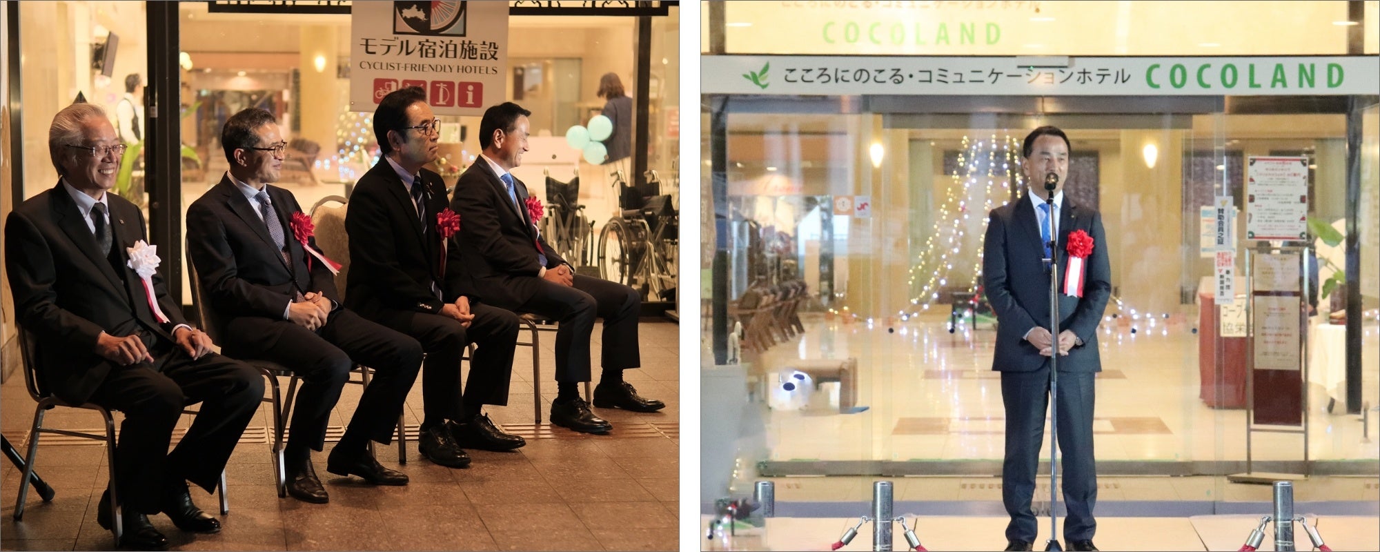 ご来賓に山口県知事村岡嗣政様、参議院議員北村経夫先生、山口大学医学部附属病院松永和人病院長、コープやまぐち山﨑理事長をお迎えし、アナウンサー沖永優子さんの司会進行のもと、ご来賓の皆様、Bar待宵本多翔士音代表、つながり応援オーナー木ノ根雄志代表によるトークセッションイベントを行いました。