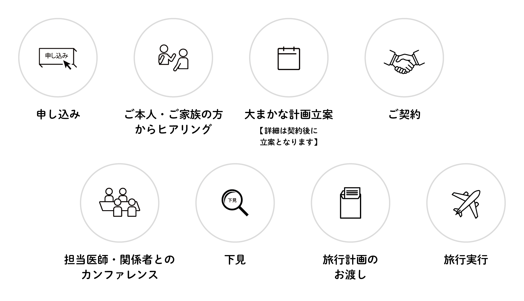 主治医や担当ケアマネージャーなどと事前に打ち合わせを行い、 旅行に必要な情報を収集します。