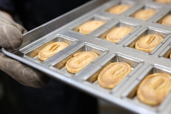 新たな「さんまパイ」は素材、製法にこだわって作っています。風味を強くするために発酵バター100%のパイ生地を使用し、バターをたっぷり使ったガレットブルトンヌを層状に重ねて、食べ応えのある食感に焼き上げています。