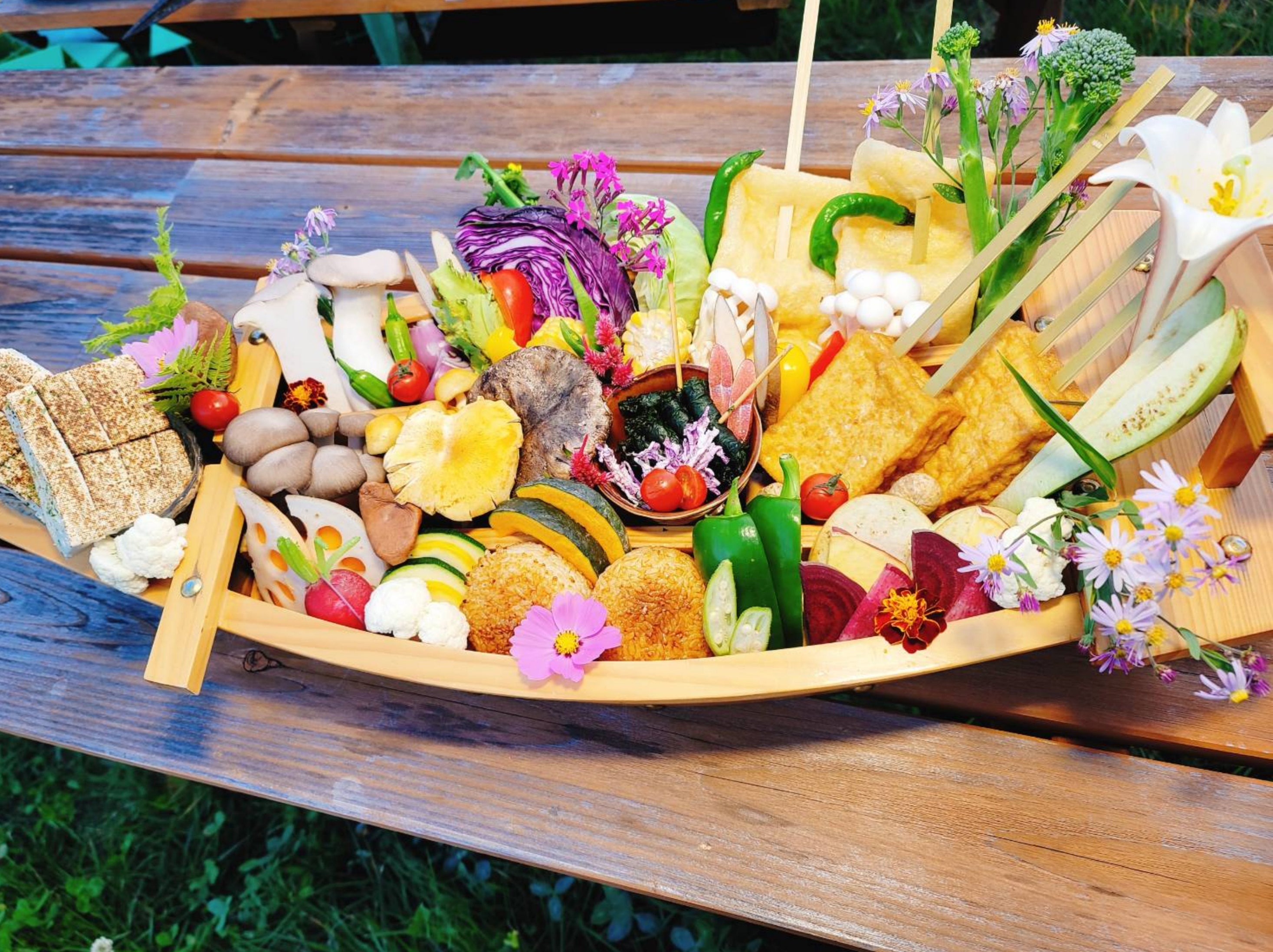 見た目の華やかさの表現や食材選びが難しいと言われているヴィーガン向け料理。日本では、対応できるグランピング施設がまだまだ少ないのが現状です。
