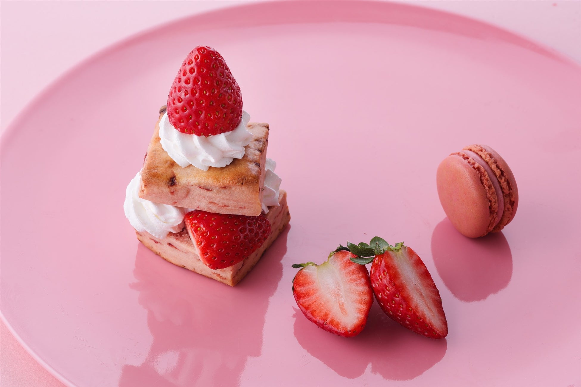旬を迎える甘美ないちごをふんだんに使用した、いちごづくしの特別プレートが新登場!サクサクとした食感が心地よく、甘酸っぱさが広がるホテルメイドのいちごスコーンに、たっぷり生クリームとフレッシュいちごをトッピング。さらに、見た目の可愛らしさとともにいちごの豊かな風味を楽しめるいちごマカロンと、新鮮なフレッシュいちごを添えました。ドリンクもいちごのモクテルなど3種類からセレクト。この季節ならではのいちごづくしの特別プレートを存分にご堪能ください。