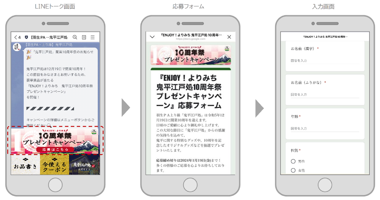 『鬼平江戸処』公式LINE内の専用フォームからご応募いただくと、