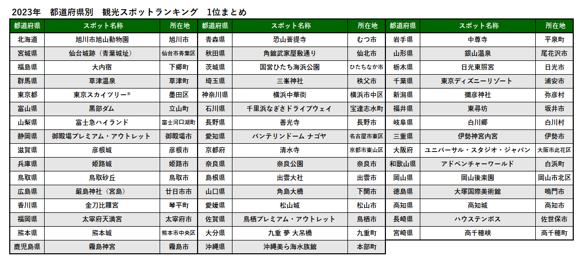 1.『2023目的地検索スポット 総合ランキング』TOP100