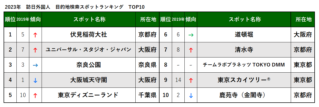 ~総合1位は2年連続で「ユニバーサル・スタジオ・ジャパン」に!4年ぶりの『訪日外国人観光客目的地検索ランキング』も~
