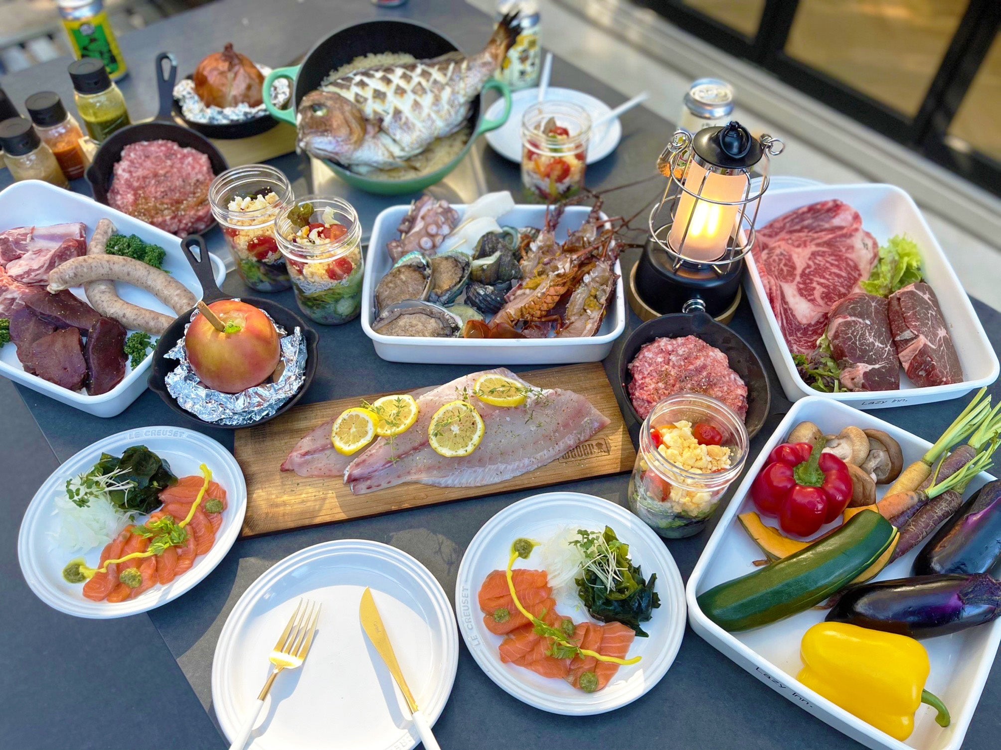 淡路の食材、素材の味をよりダイレクトに味わっていただけるよう、BBQメニューをリニューアルいたしました。 お肉、海鮮、野菜と食材はこれまで以上に素材そのものの味にこだわりぬいたものへリニューアル、そしてその食材をできる限り”丸ごと”調理することで素材のうまみを存分に味わえるオーブン料理のような滋味深いBBQをお楽しみいただけます。