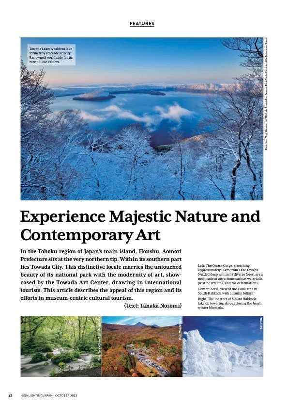 本誌では、十和田市現代美術館、奥入瀬渓流、紅葉、樹氷など、十和田市の魅力を取り上げていただきました。