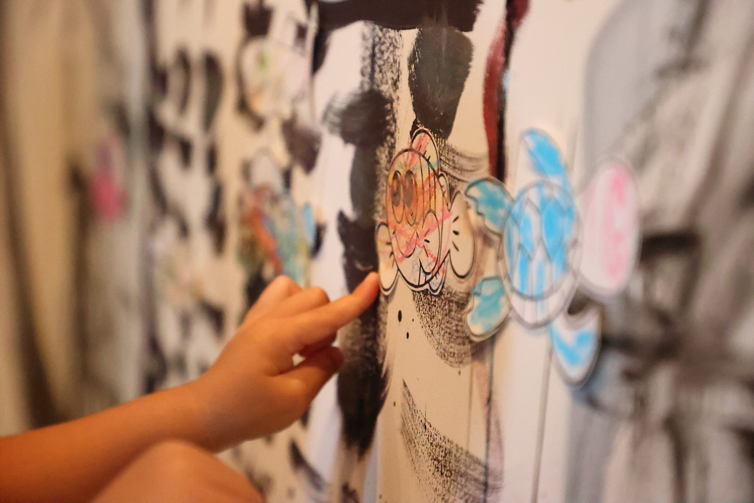 真栄里氏が描くpoppafishはかわいらしいお魚、ポッパー君のイラストです。展示だけでなく、アートのワークショップを行うことで子供たちがアートに触れる機会になるのではないか。との思いから、同じ施設内にある企業主導型保育園、ひばりの保育 石垣のいえの園児たちに声を掛け、蔵元 SAKE & GALLERY presents 「結×EXPRESSION」 vol.1 / ポッパー君やお魚達が描くpoppafish展のワークショップの開催をいたしました。