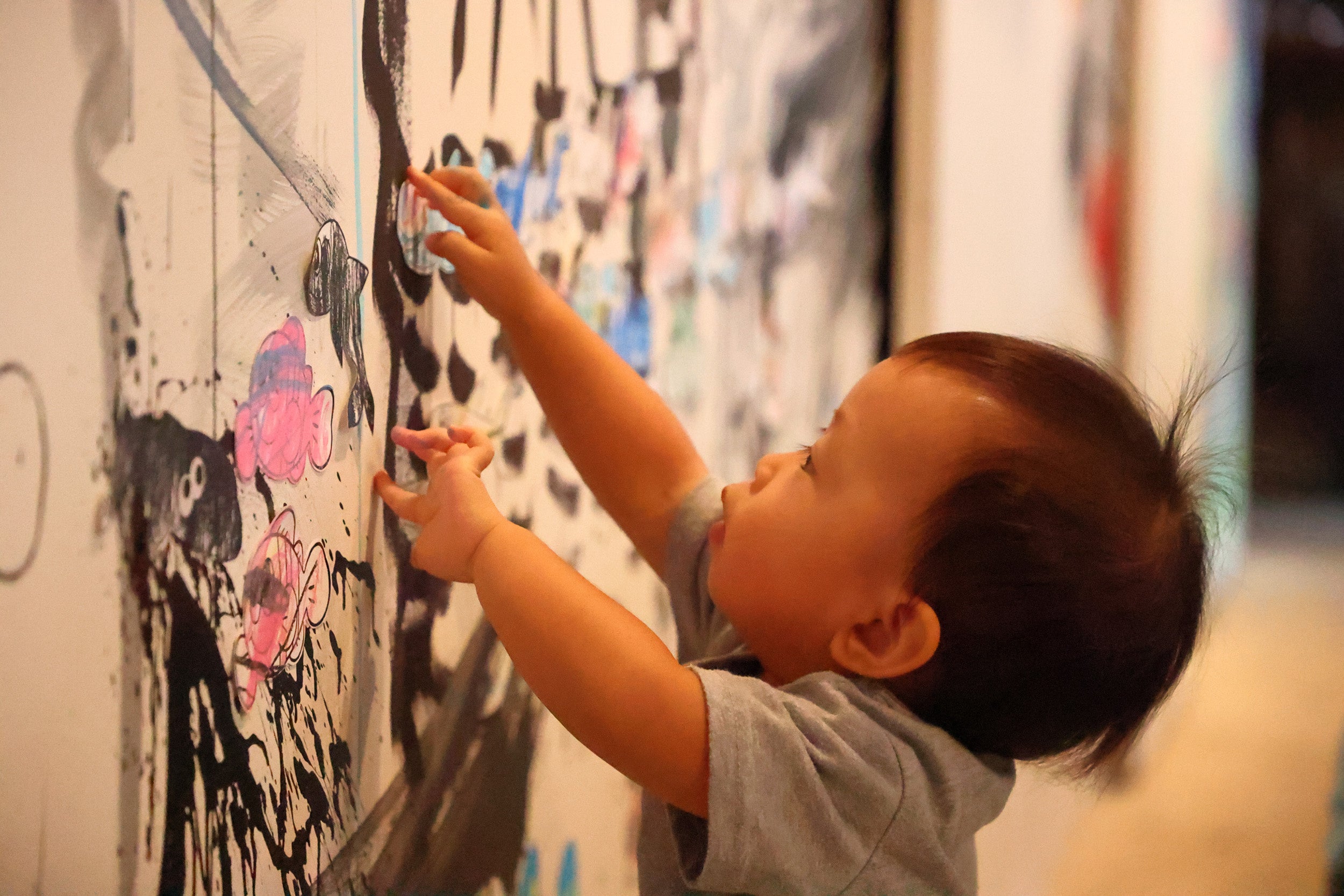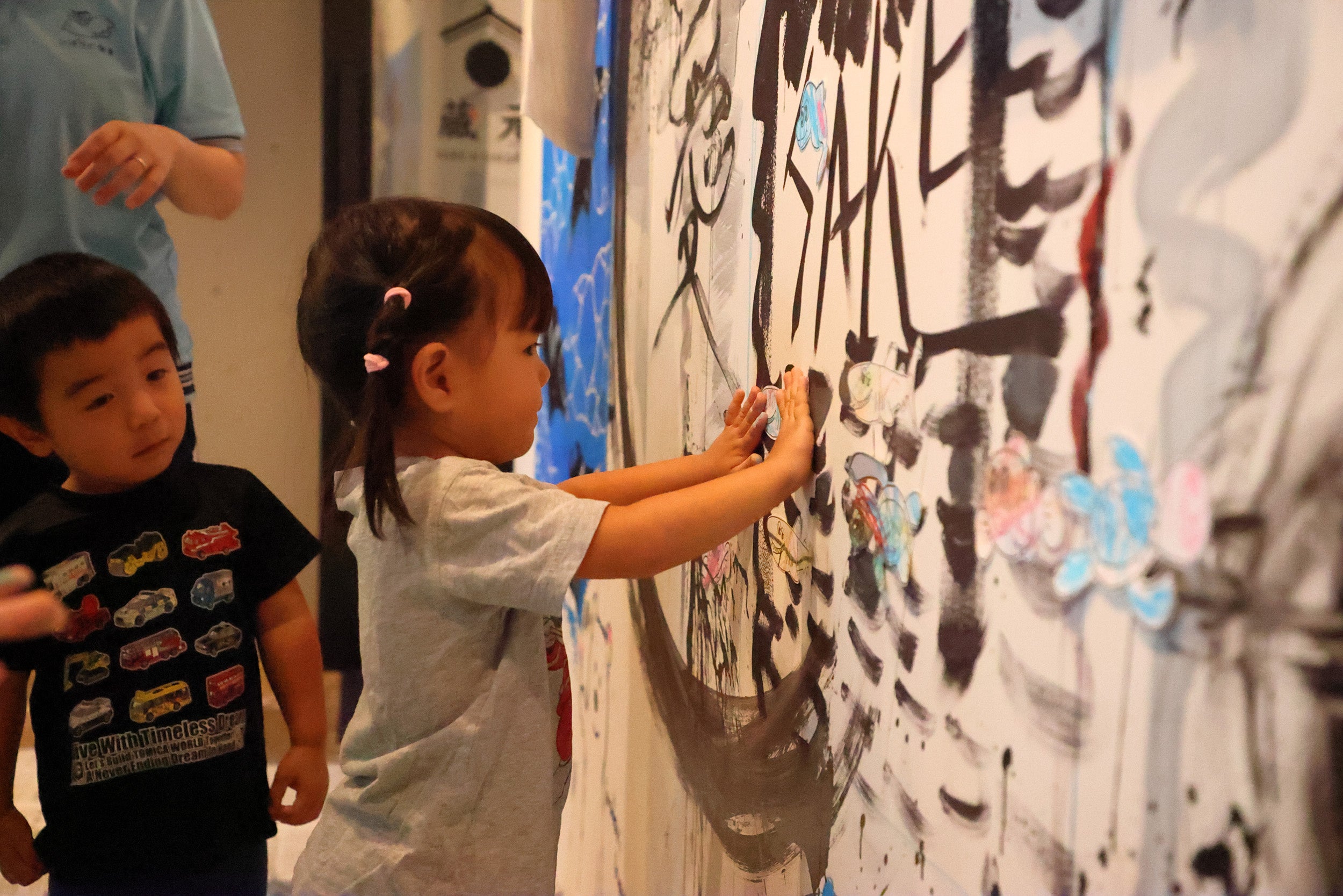石垣島ホテルククルの1階、蔵元 SAKE & GALLERY presents 「結×EXPRESSION」vol.1/poppafish石垣島 真栄里氏とひばりの保育 石垣のいえの園児たちのコラボ