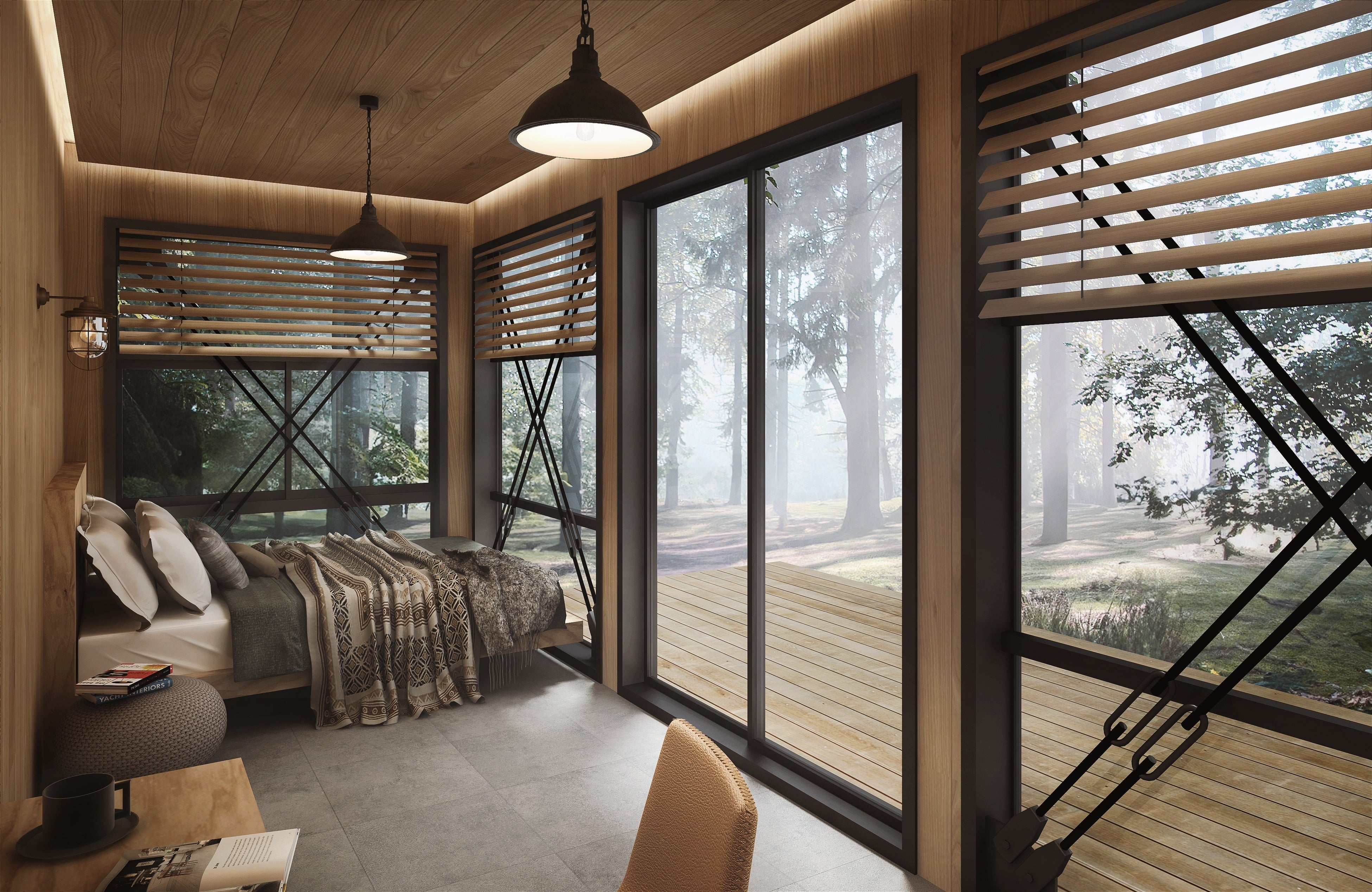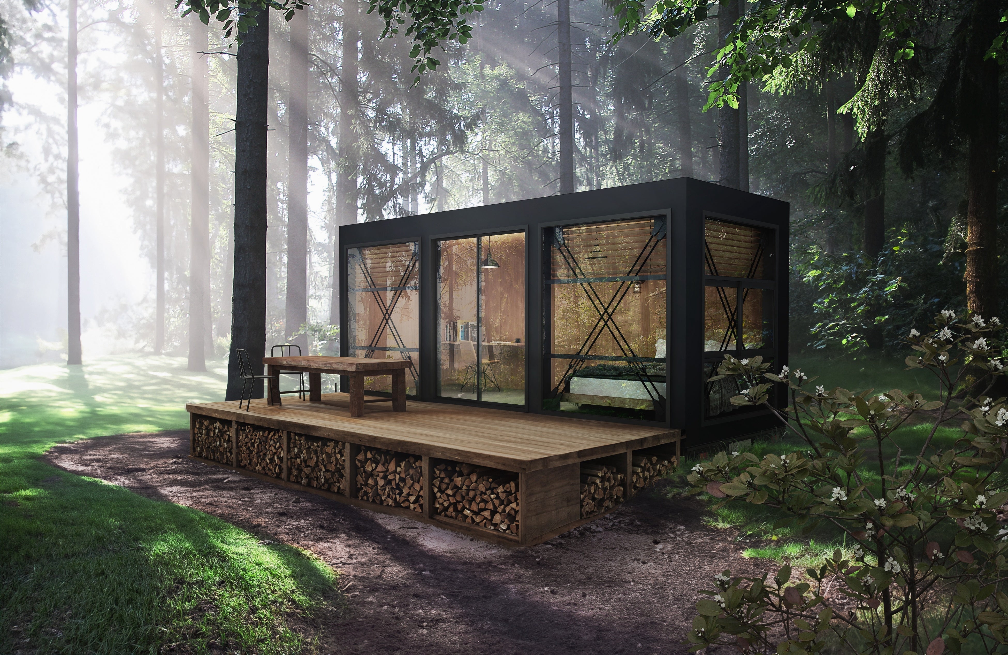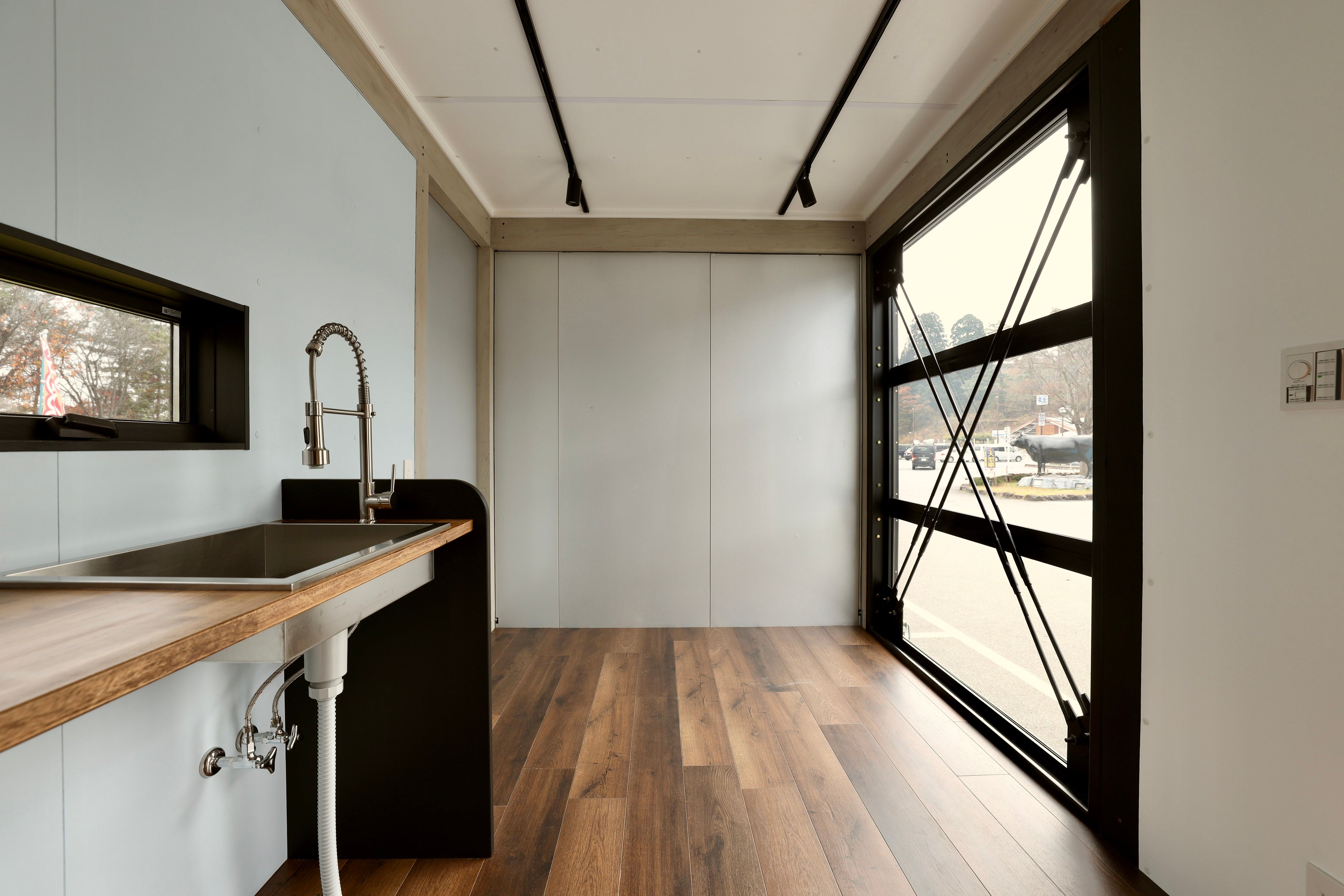 そこには、環境への負担を徹底して抑えたシンプルなトレーラーハウス。
