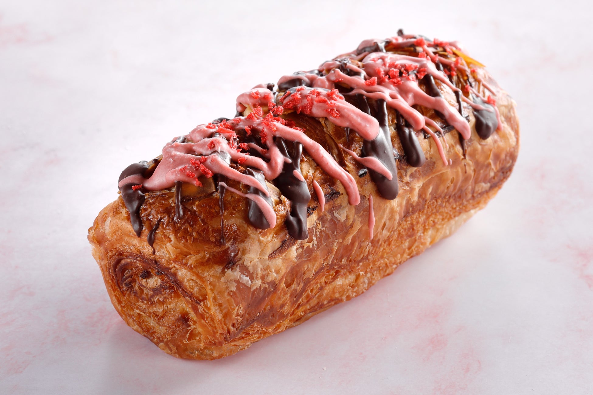デニッシュ生地でいちごフレーバーのチョコレートクリームを包み、スライスアーモンドをトッピングしました。香ばしいアーモンドチョコと甘酸っぱいいちごが絶妙な、毎年人気のデニッシュです。