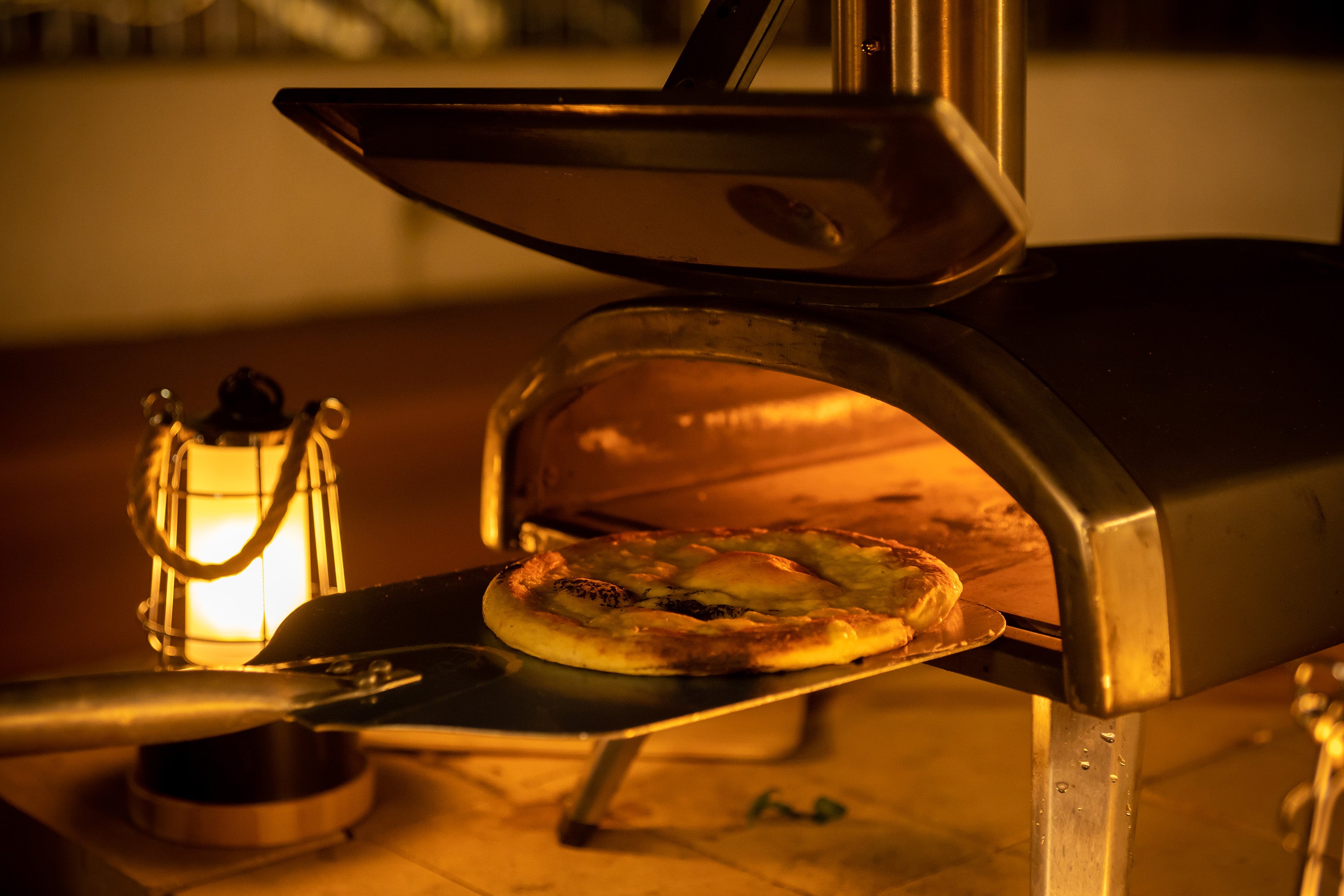 中庭にあるイタリア製のピザ窯を使用。400℃以上の高温で一気に焼き上げるチーズピザは「とても美味しい」と評判。
