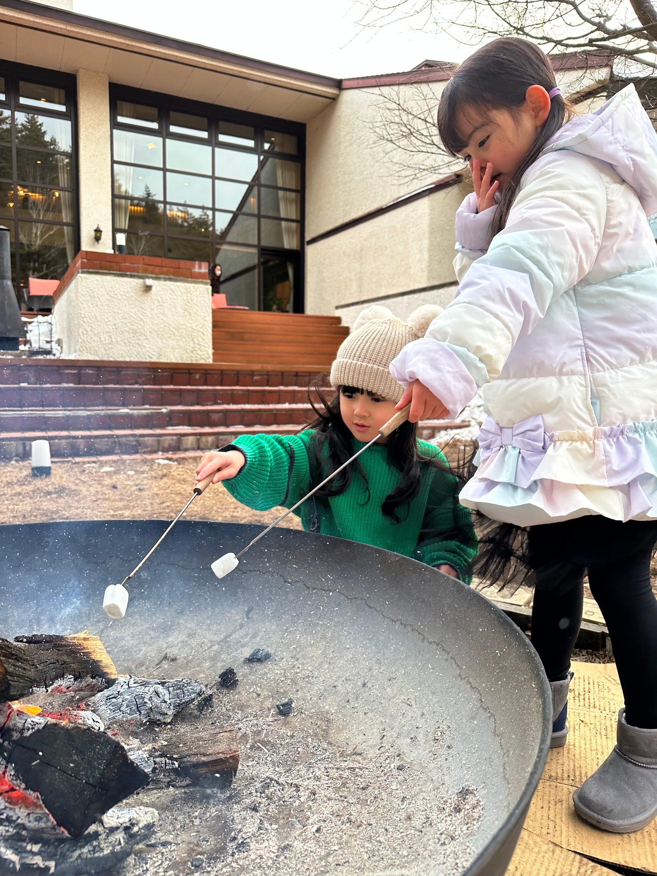 大きな焚き火で焼くマシュマロは外サクサク、中とろとろ。