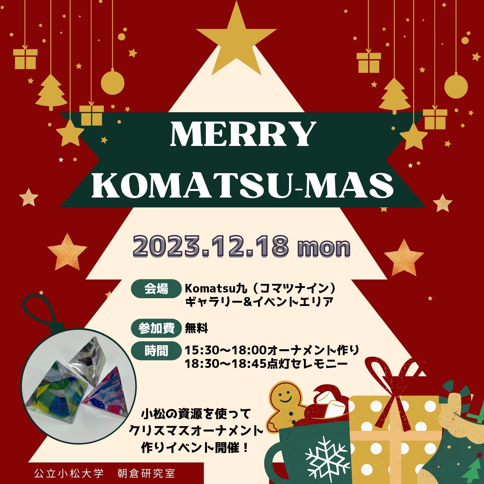 同日には、小松の資源を使ったクリスマスオーナメント作りのイベントも開催されます。参加費は無料で、親子でクリスマスを楽しむのにピッタリなイベントとなっています。