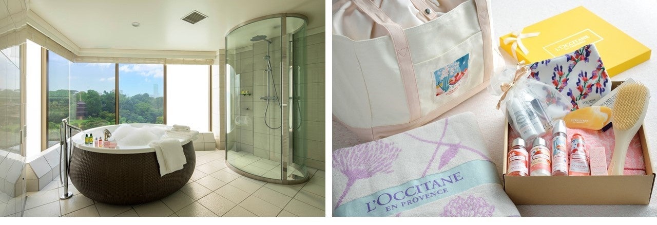 桜の季節限定でロクシタンとコラボレーションした、バスタブから庭園を望むビューバススイートに泊まり、特等席からお花見体験を。お部屋の中からギフトにいたるまでロクシタンのチェリーブロッサムの世界観とともに桜をお楽しみいただけるプランです。