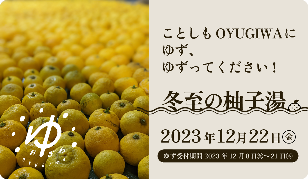 「冬至に柚子湯に入ると、一年中風邪をひかない」という古くから日本にある言い伝えにあやかり、今年も12月22日(金)の冬至の日にOYUGIWAではイベント湯で「冬至の柚子湯」を開催します。