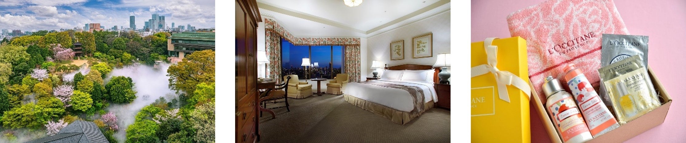 ホテル椿山荘東京の桜シーズンは、2月の早咲きの河津桜や寒緋桜などを皮切りにスタートし、フィナーレを飾る八重桜が花開く4月中旬まで、時期をずらしながら約20種100本の桜が開花し、庭園を美しく桜色に染めます。ロクシタンの「チェリーブロッサム」シリーズは、豊かな自然に囲まれ、たくさんの芸術家たちに愛される南仏リュベロン地方の淡く繊細な桜の花の香りを閉じ込めたフレグランスシリーズです。初恋を思わせるような、甘く切ないピュアな香りに包まれながら、庭園の美しい桜も堪能いただく贅沢な宿泊プランは、のお客様にお楽しみいただきました。そんな桜シーズン好評のプランが、ホテル椿山荘東京にて、今年も期間限定で提供いたします。