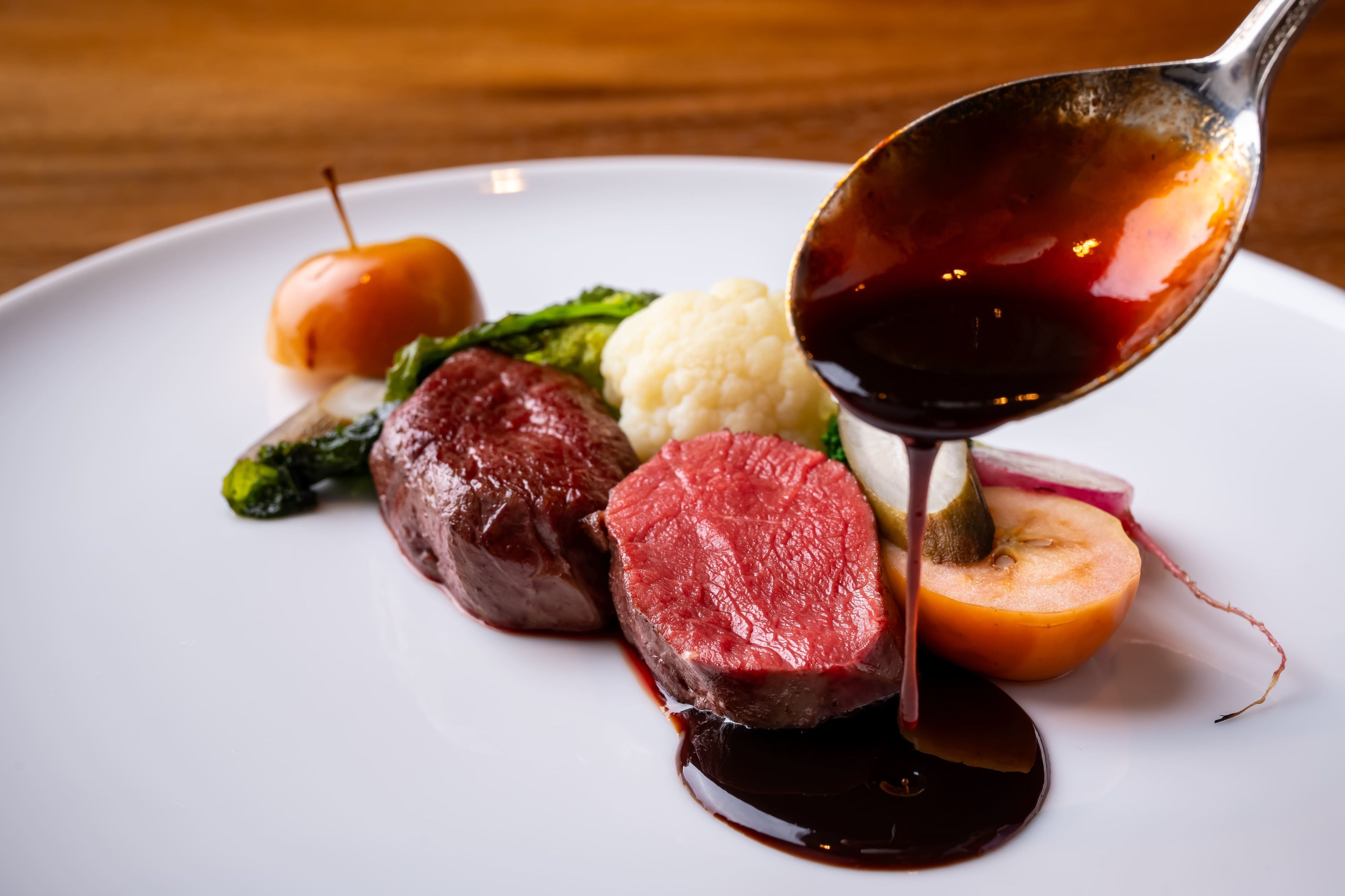 2日目はディナーブッフェをコース料理(追加料金あり)に変更。信州吟醸豚や信州アルプス牛からメインをチョイス