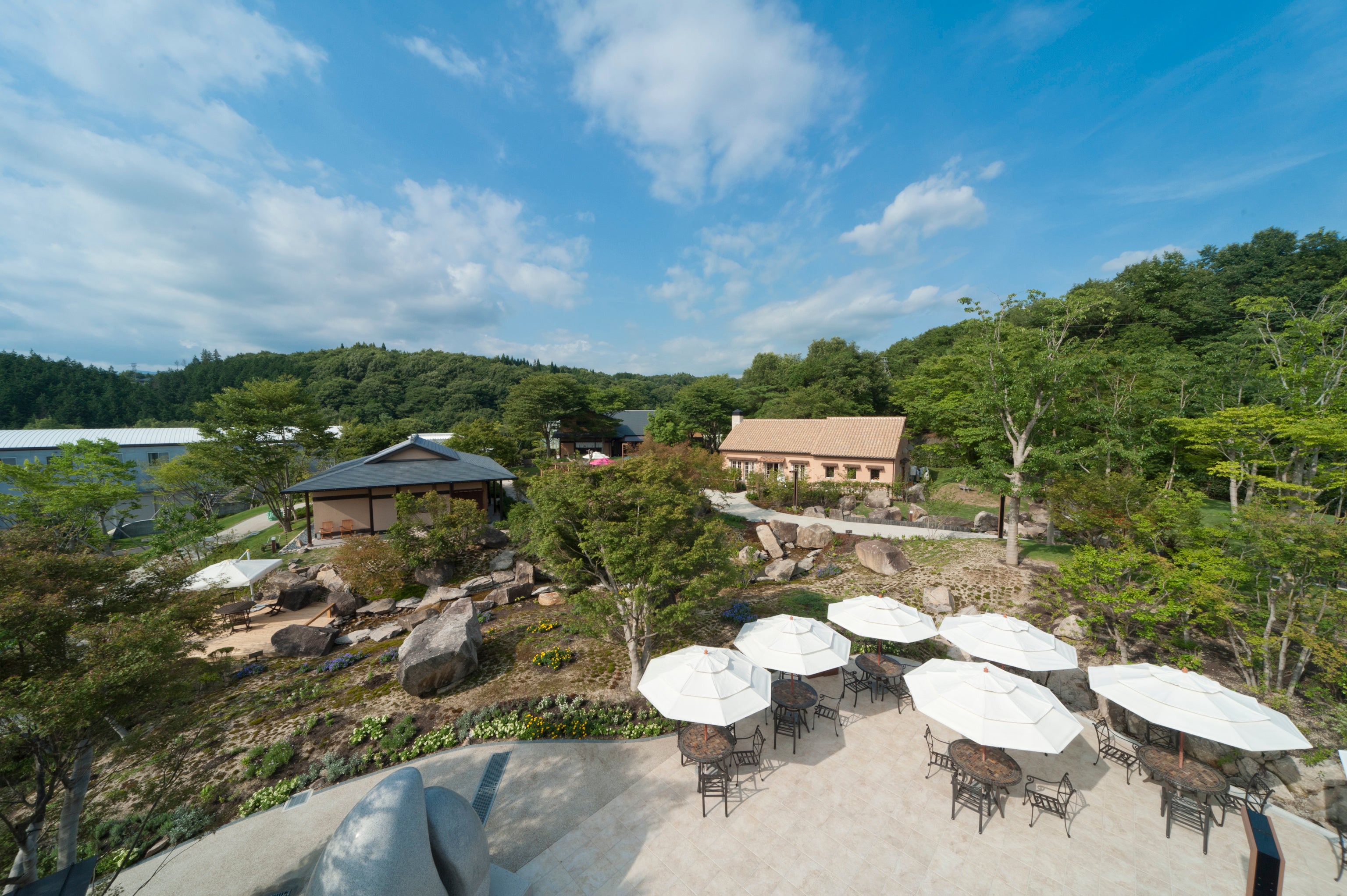 ひとつひとつ異なったテーマの施設で“⾷”を楽しんでいただくとともに、遊歩道散策など“⾃然”をゆっくりと楽しん でいただける、ありそうでなかったアミューズメン