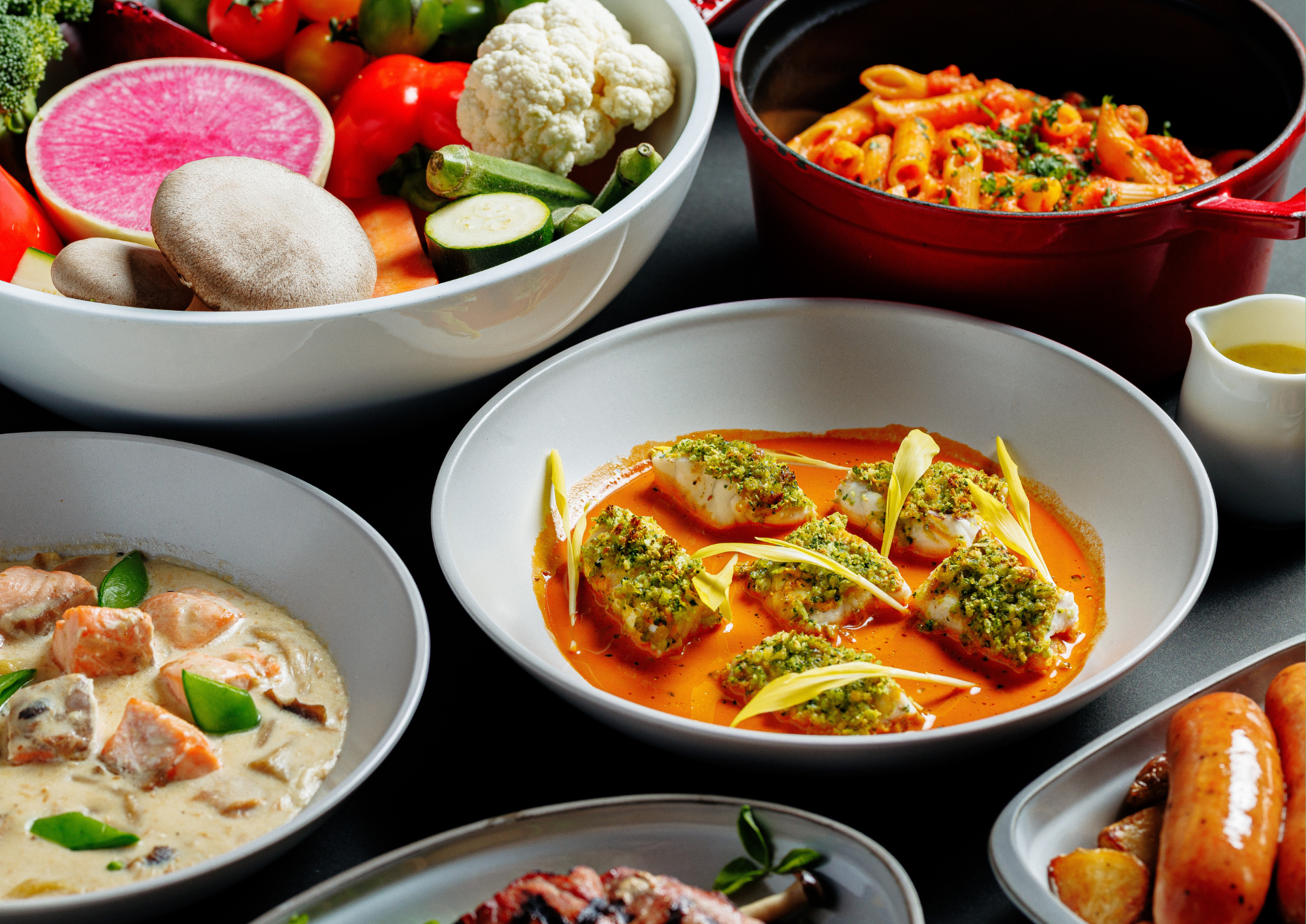 季節のフルーツやシリアルなどが並ぶ“シグネチャー・シリアル・バー”をはじめ、一日のスタートにぴったりな充実の朝食、栄養やスタミナをテーマにした国際色豊かな日替わりランチ、そして一日の終わりには自分へのご褒美に、おすすめのワインとそれによく合うお料理を。宿泊ゲストだけでなく、地元の方々もお楽しみいただけるコンテンポラリーで遊び心あるデザイン&レイアウトが魅力のオールデイダイニング。イタリア製のカラフルなテーブルウェアなど、フォトジェニックな場所を探してみるのもおすすめです。