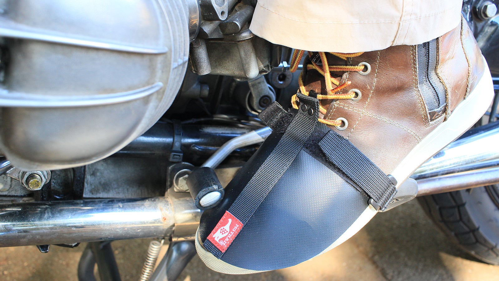 ブーツからトレッキングシューズに対応し汎用性あり つま先部分を覆うのでバイク用シフトガードにも。