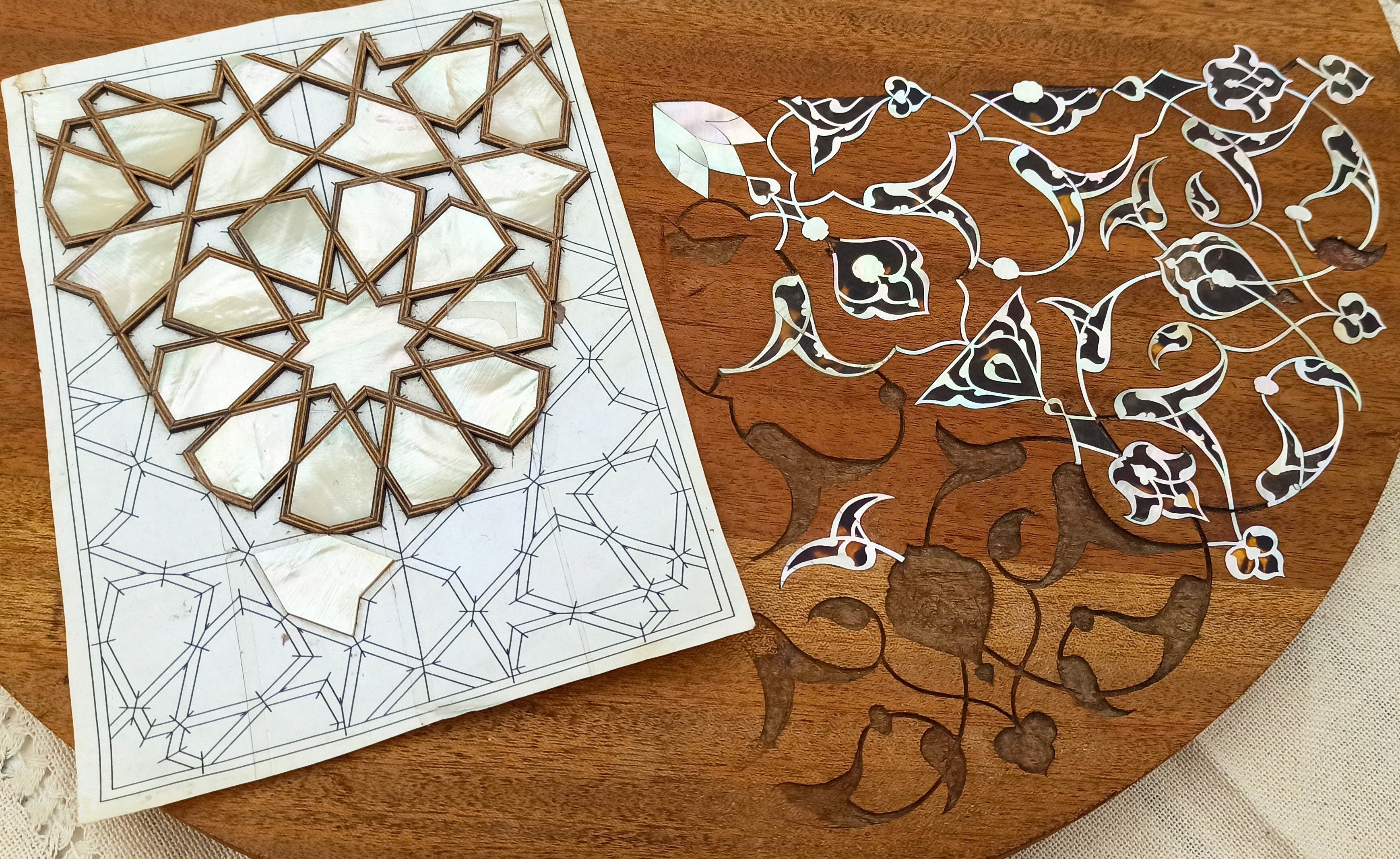 トルコ語で「セデフ・カクマ」と呼ばれる螺鈿細工は、その優雅さと複雑な美しさで評価されている精巧な工芸品です。この古い技法は、木製の構造物にさまざまな形で開けられた溝に、光沢のある真珠層を繊細に埋め込むものです。この伝統工芸は、インテリアの建築要素、ステッキ、鏡、下駄、額、キャンドルホルダー、くし、すごろくセット、テーブル、椅子、土産物などの日用品に応用されています。虹色にきらめく見事なデザインを生み出す螺鈿細工の職人技には、トルコ文化に深く根ざした豊かな歴史があり、何世紀にもわたってアナトリアの人々の熟練した技術とセンスを反映し続けています。「螺鈿細工の職人技」は、ユネスコの人類無形文化遺産代表リストに、トルコとアゼルバイジャンの遺産として登録されました。