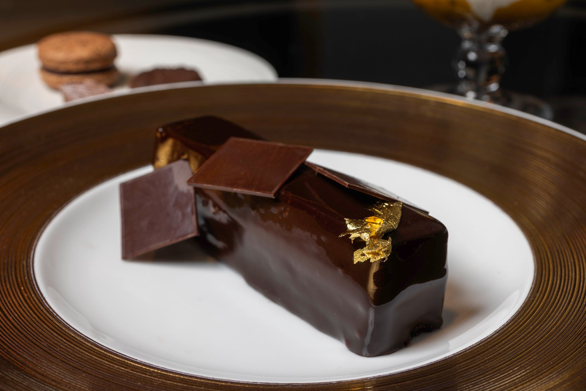 季節ごとに、ピエール・エルメ・パリの異なるフレーバーのスイーツを、ホテルのお部屋でしか味わえない特別スイーツセットにアレンジして展開している本プラン。今回のスイーツプレートは“チョコレート尽くし”を意味する、ピエール・エルメ・パリの代表的なチョコレートケーキ「キャレマン ショコラ」をベースにご用意しました。