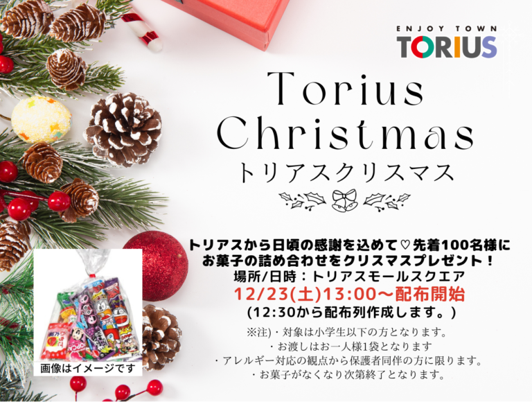 トリアスからお子様たちにクリスマスプレゼント(※先着100名様)をお渡しします。