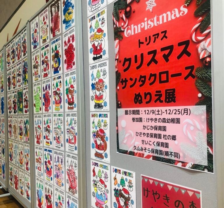 久山町の幼稚園・保育園の子どもたちがサンタクロースのぬりえを描いてくれました。詳細ページ:https://torius.com/event/76345/