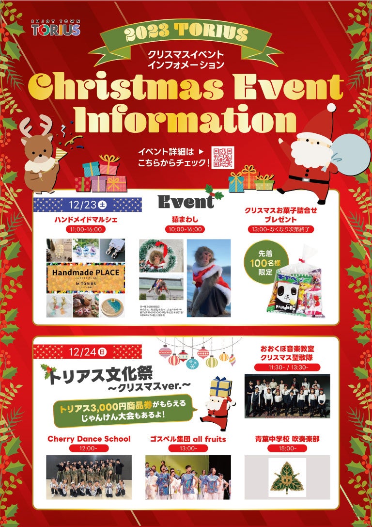 豪華プレゼントがもらえる大抽選会、サンタセール、マルシェ、ステージパフォーマンスetc.. クリスマスはイベント盛りだくさんのトリアスへ!