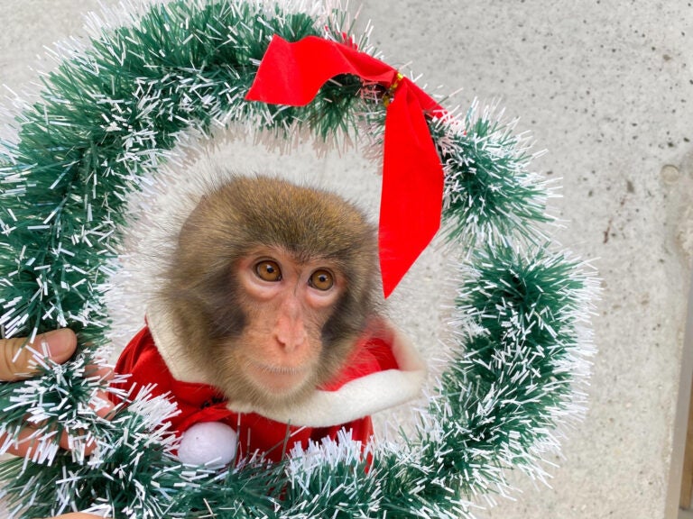 クリスマスステージはお猿さんもサンタ衣装で登場です!