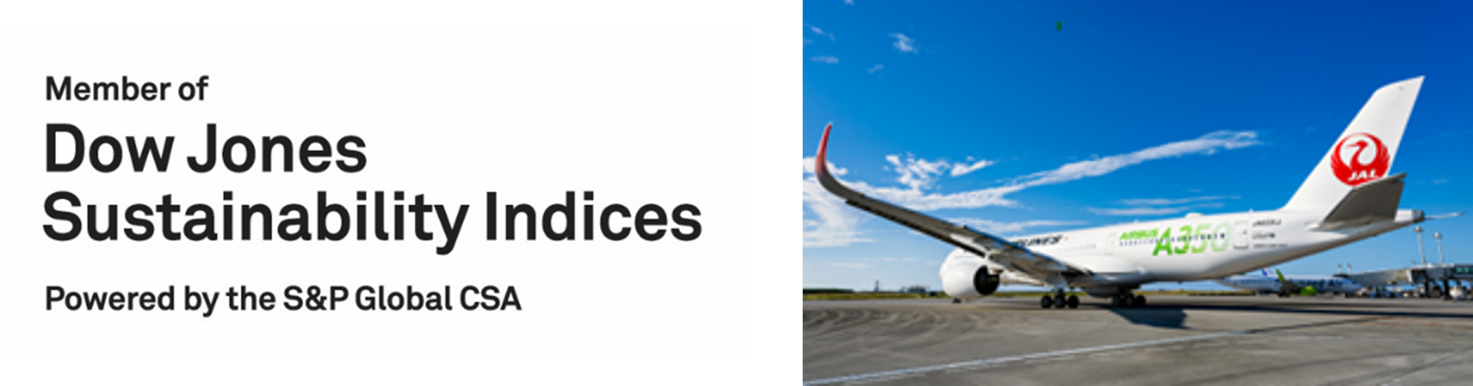 JALは、このたびESG(環境・社会・ガバナンス)投資の代表的指数である「Dow Jones Sustainability Index (以下「DJSI」)」のアジア・太平洋地域の企業で構成される「Dow Jones Sustainability Asia Pacific Index (以下、「DJSI Asia Pacific Index」)」の構成銘柄に、世界の航空業界トップのスコアで、2年連続選定されました。