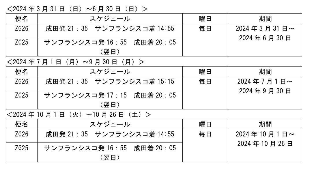 4. ZIPAIR成田/サンフランシスコ線2024年夏スケジュールはデイリー運航に