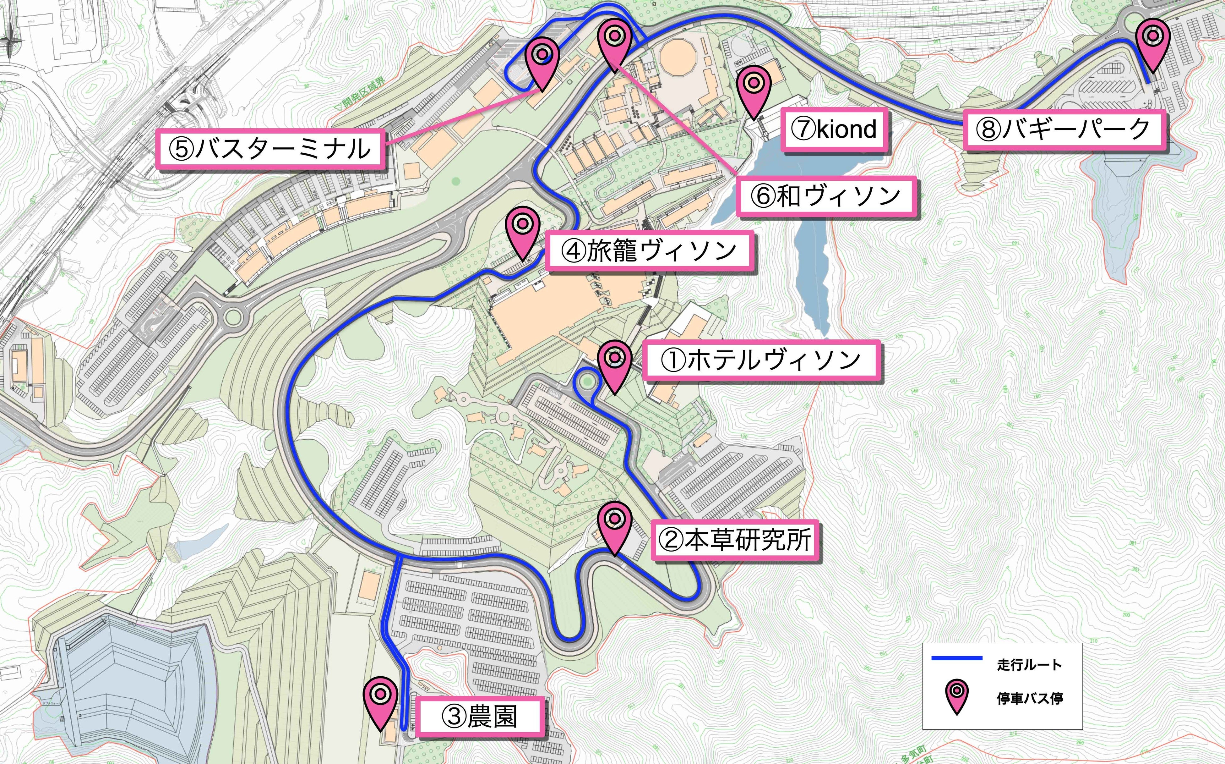 「VISON」では、自動運転モビリティの走行を見据えて、2021年の開業当初からモビリティレーンを整備しています。本事業では、モビリティレーンおよび一般の車道を含む片道約2.5kmのルートで、ナンバープレートを取得した「MiCa」を運行します。BOLDLYは、車両の提供および自動運転の走行設定、BOLDLYが開発・提供する運行管理システム「Dispatcher(ディスパッチャー)」の提供、 運行体制の構築などを行います。また、現在「VISON」のシャトルバスの運行に携わっているドライバーが、BOLDLYからのトレーニングを受けて必要な知識とスキルを身に付けた上で、オペレーターや遠隔監視などの「MiCa」の運行業務を実施します。これにより、「VISON」での自動運転レベル4での運行や多気町全体への展開を見据えた、汎用性の高い運行体制の構築を目指します。 ※自動運転レベル2で運行します