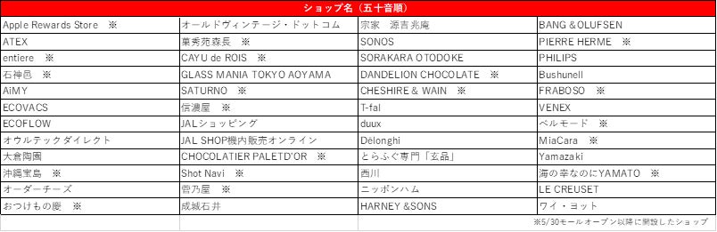 「JAL Mall」は、2023年5月30日(火)にファッション、生活雑貨、家具・家電、グルメなどの幅広い分野で、それぞれ高い人気を誇る全29ショップ(JALグループのショップ含む)が出店してスタートし、現在は48ショップが出店しています。2023年12月末までにはさらに6つのショップが追加されて、54ショップが展開される予定です。