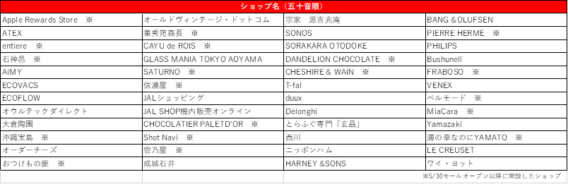 「JAL Mall」は、2023年5月30日(火)にファッション、生活雑貨、家具・家電、グルメなどの幅広い分野で、それぞれ高い人気を誇る全29ショップ(JALグループのショップ含む)が出店してスタートし、現在は48ショップが出店しています。2023年12月末までにはさらに6つのショップが追加されて、54ショップが展開される予定です。