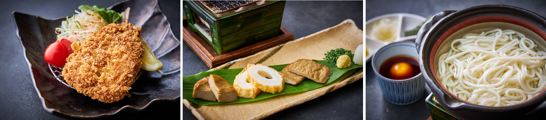 長崎県はトラフグ養殖生産量全国1位です。お椀料理では濃縮された旨味と香ばしさをご堪能いただけるように焼きふぐにし、さらに旨味や風味がだしに溶けて味わい深いスープを楽しむことができる土瓶蒸しに仕上げました。合肴はぷりぷりで上質な脂がのった上品かつ深みのある味が特徴の長崎県産 高級魚”クエ”をあごのつみれと長崎のかんぼこ(かまぼこ)と一緒にお召し上がりいただける小鍋に、食事の締めくくりには細麺ながらコシがありのど越しが良い“五島うどん”をご用意しました。長崎のうまいものを盛り込んだ特別会席をこの機会にぜひご賞味ください。