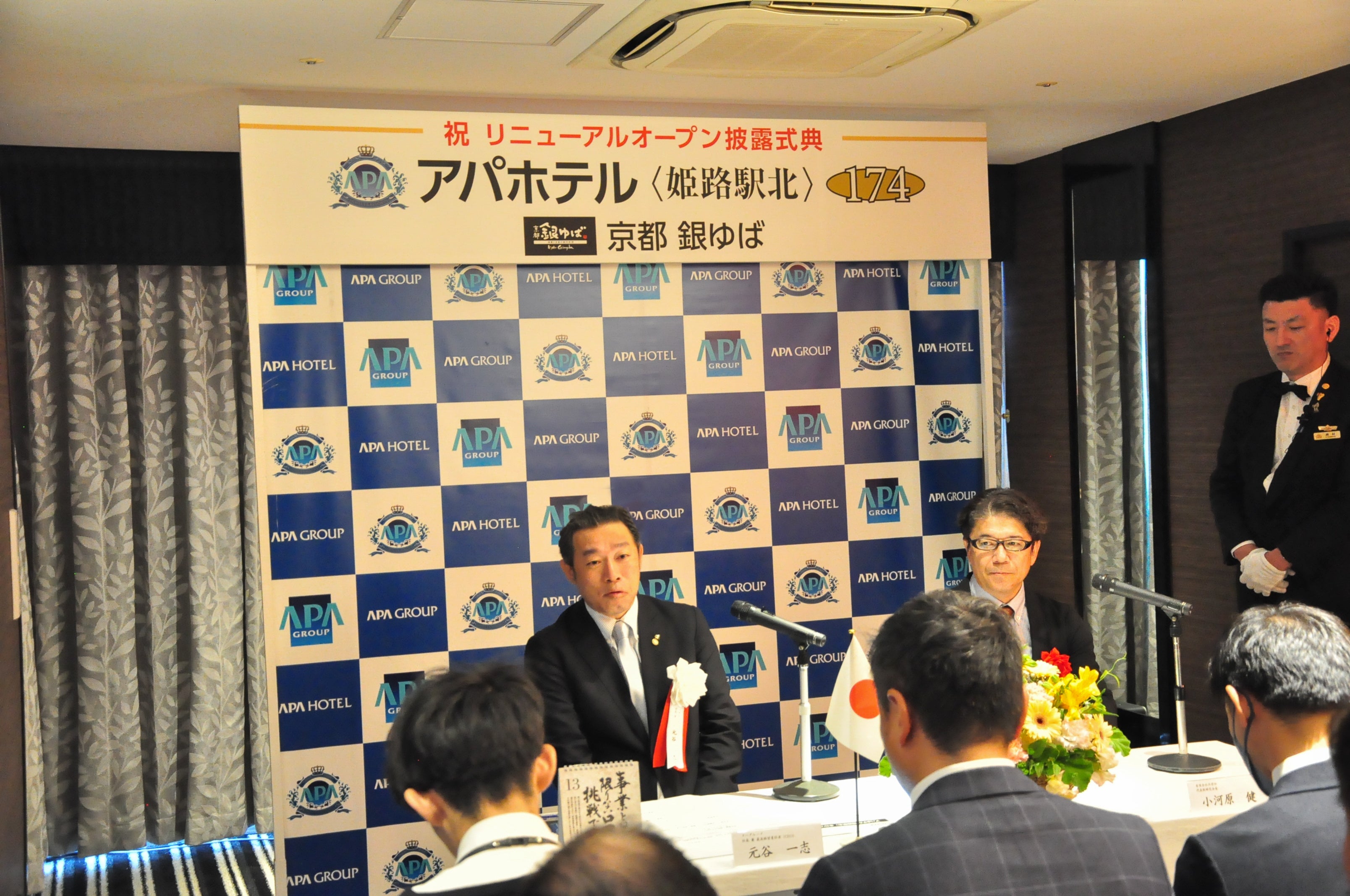 記者発表では、アパグループ社長 兼 最高経営責任者(CEO)元谷 一志は「当ホテルは厚生労働省へのホテル貸出協力終了を機に、館内改装、設備更新を行い、本日リニューアルオープンを迎えたことを大変嬉しく思う。姫路エリアは世界文化遺産登録30周年を迎える姫路城など観光都市として世界的に注目を集めているエリアである。また、今年の内定式ではコーストホテルの幹部も参加するなどグローバル企業としての側面も強めている。円安や2025年開催の関西万博など、今後ますます増える訪日外国人を見込み、より一層利便性や満足度の高いホテルへと進化を遂げながら、グローバル化及び近隣地域との共存共栄を図りつつ、関西においてもさらなる拡大戦略を進めていきたい。」と述べた。